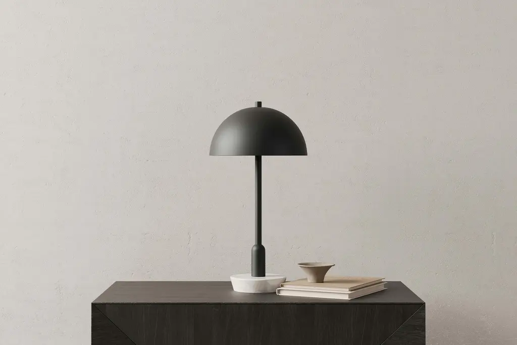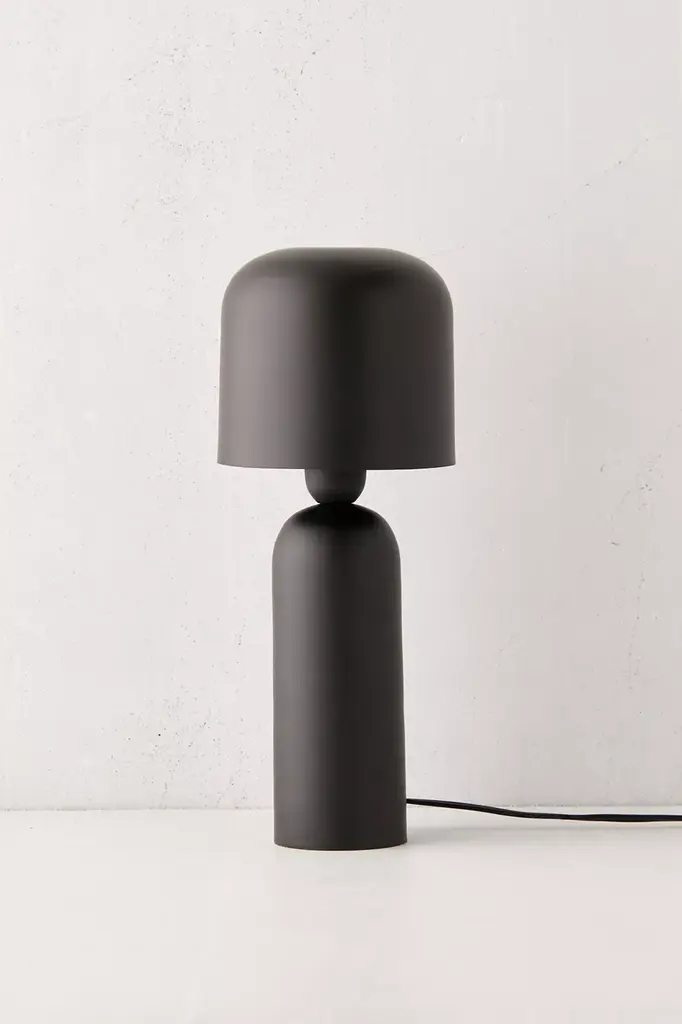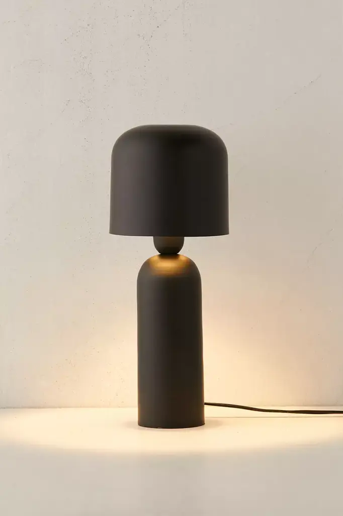 Lacquered metal table lamp that illuminates your space with sleekly modern appeal. Cylindrical base supports an integrated domed shade. Plugs in to power on with easy-access on/off switch; LED and compact fluorescent compatible. **Features** \- Metal table lamp \- Plug-in \- On/off switch \- Requires one 7W A15 LED bulb - not included \- LED and compact fluorescent compatible \- UL listed **Content + Care** \- Iron \- Wipe clean \- Imported \- Made in compliance with US electrical standards. To use this item outside of the US, pair with an outlet adapter and voltage converter made specifically for use in your location. **Size** \- Dimensions: 6"dia x 15.5"h \- Shade dimensions: 6"dia x 5.75"h \- Base dimensions: 3.5"dia x 11"h \- Wattage: 7W \- Weight: 4.4 lbs \- Shipping package dimensions: 7"l x 7"w x 20"h \- Shipping package weight: 5.75 lbs