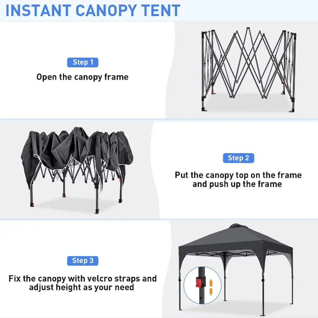 Ainfox 10' X 10' Outdoor Canopy Tent Black Thicker Oxford Cloth Adjustable Height
