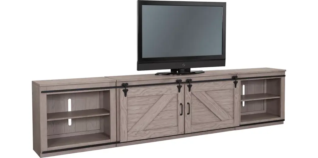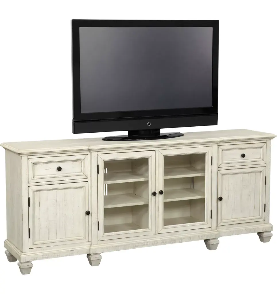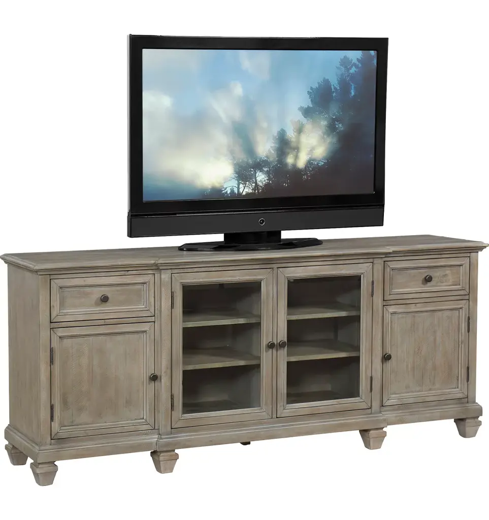 Ainsworth Pickled Oak 85" Storage Media Console With Glass/wood Doors