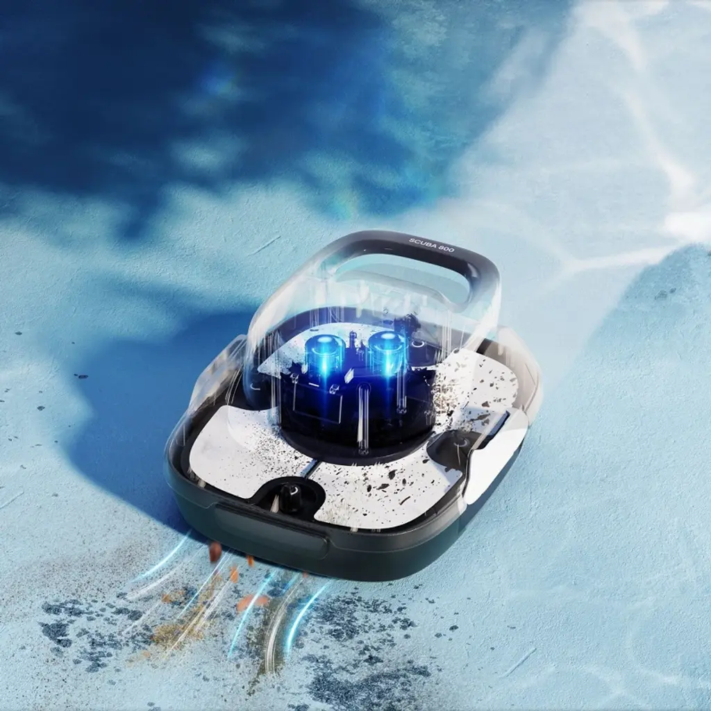 Dive into effortless pool maintenance with the Scuba 800's hydrodynamic design, propelling it through your pool with minimal power consumption. Unlike bulky corded cleaners, it dedicates maximum power to a full 100 minutes of thorough cleaning. Experience ultra-portability with its quick drainage system, expelling 80% of water in just 15 seconds for easy retrieval and storage. Stay informed with the Audio Alert System, ensuring a seamless cleaning experience. The dual-drive motors generate 22 GPM, providing powerful suction and filtration for a cleaner pool in less time. Activate with a click, and enjoy auto-parking for convenient retrieval. Cut the cord for a lighter, more portable pool-cleaning solution with the Scuba 800.