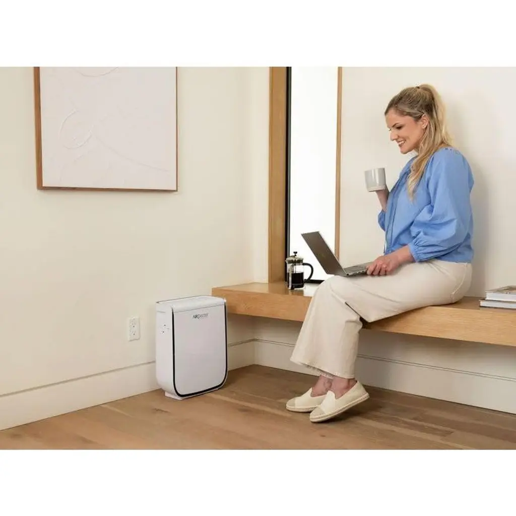 The AirDoctor portable purifier offers triple protection: an UltraHEPA filter capturing ultra-fine PM 2.5 particles down to 0.003 microns, an activated carbon filter removing odors and VOCs from sources like cooking, paint, and cleaning products, plus a pre-filter that traps pet dander, smoke, and hair.