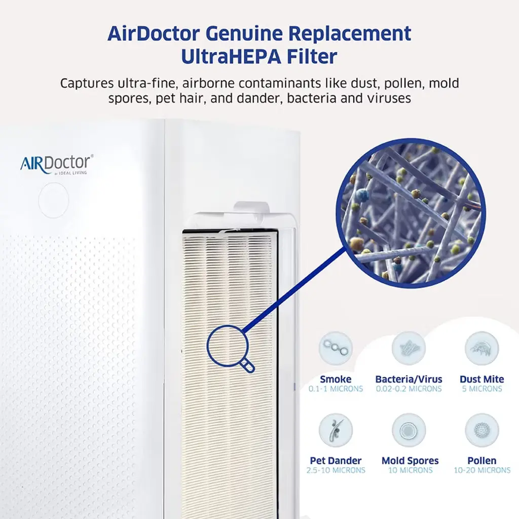 Our AIR Doctor UltraHEPA filter fits AD5000 and AD5500 units, capturing particles at 0.003 microns—100x smaller than standard HEPA. It lasts up to one year. Always unplug before replacing. Customers also bought AirDoctor 3500, 5500, 2000, and related filters.
