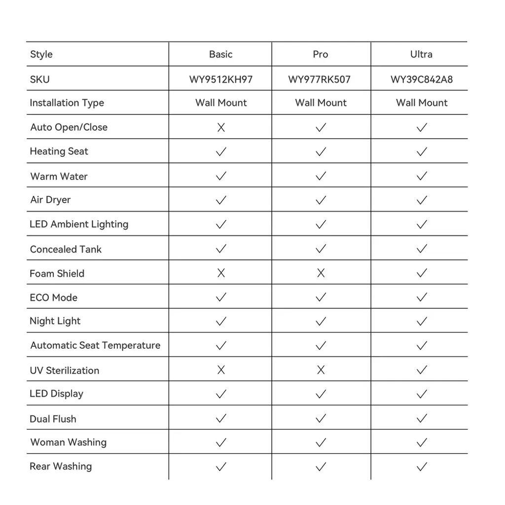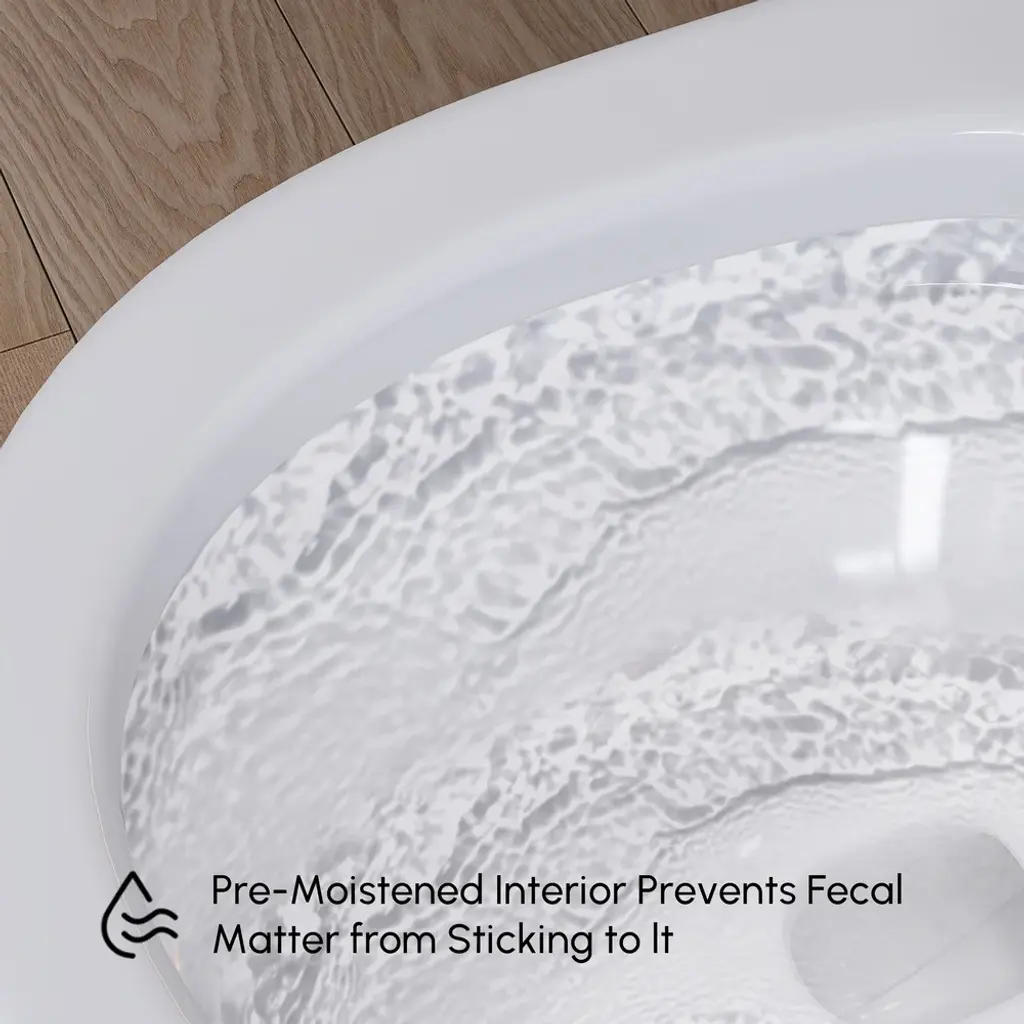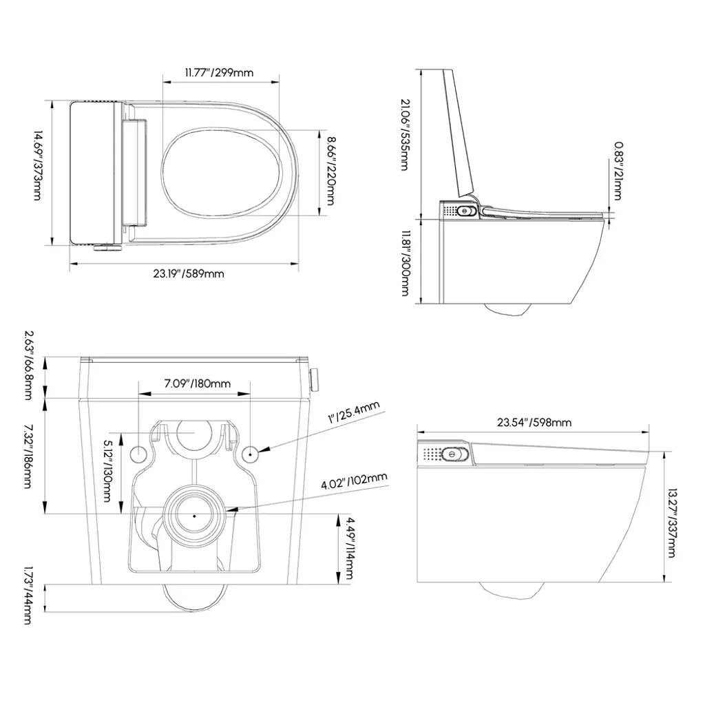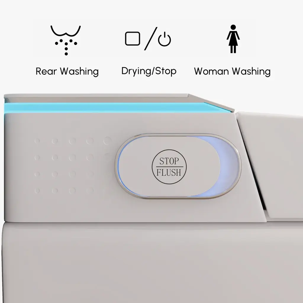 This wall-mounted Smart Toilet features innovative Foam Shield technology and auto-seasonal seat warming. With 4 water/4 air temp settings, self-cleaning nozzle, and built-in tank, it delivers premium hygiene without water pressure dependence. Remote control included.
