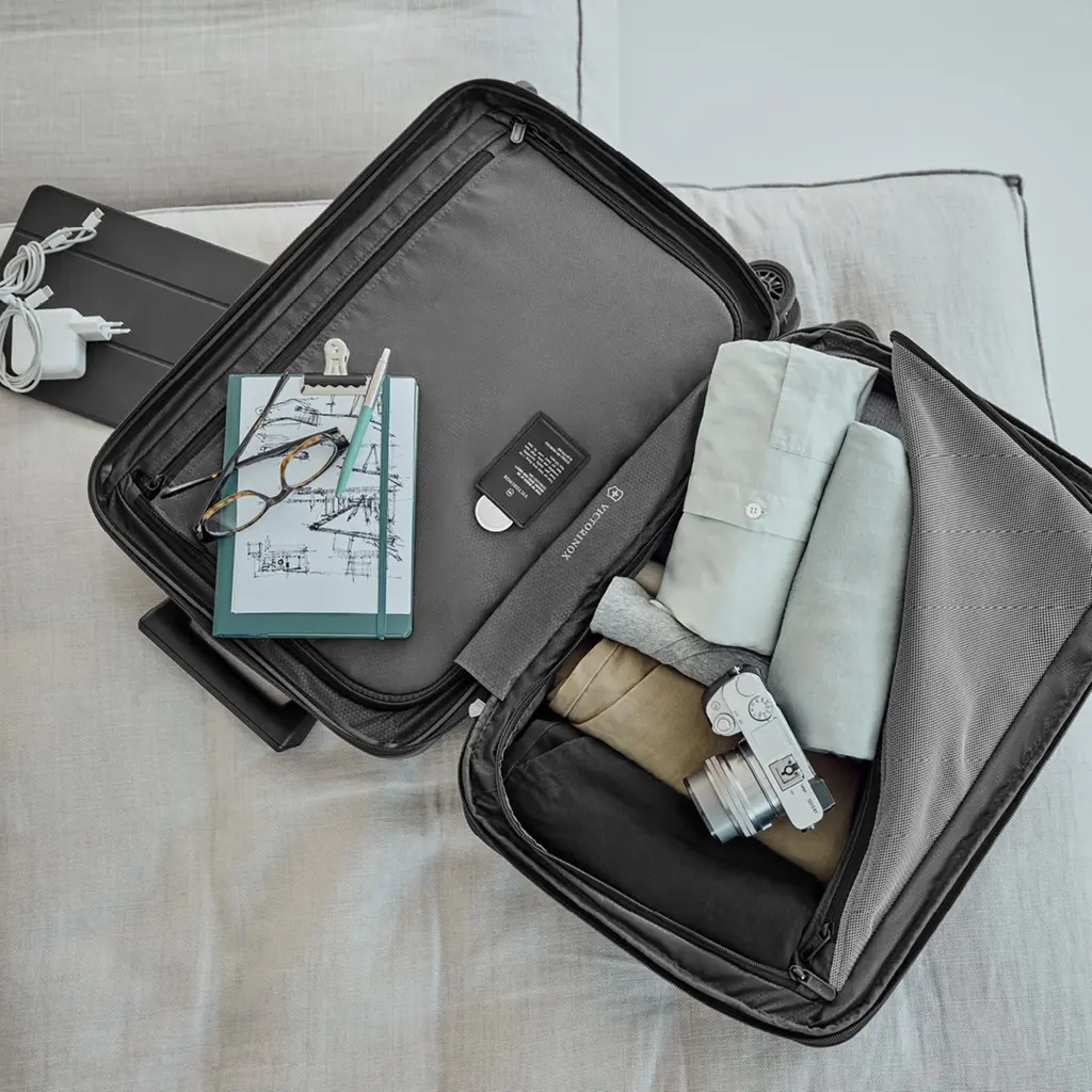 Lightweight and a dream to maneuver on premium spinner wheels, the Airox Advanced Collection from Victorinox features durable scratch resistance on the outside and intelligent organization within. Meticulously engineered, the suitcases are expandable to offer a little more room when you need it.