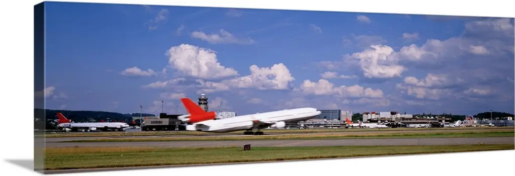 Airplane taking off, Zurich Airport, Kloten, Zurich, Switzerland wall art for home and office decor. Discover canvas art prints, photos, mural, big canvas art and framed wall art in GreatBigCanvas.com's varied collections.