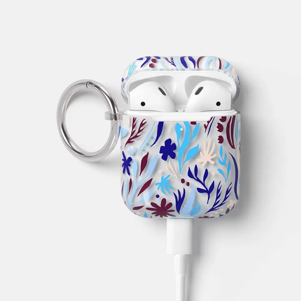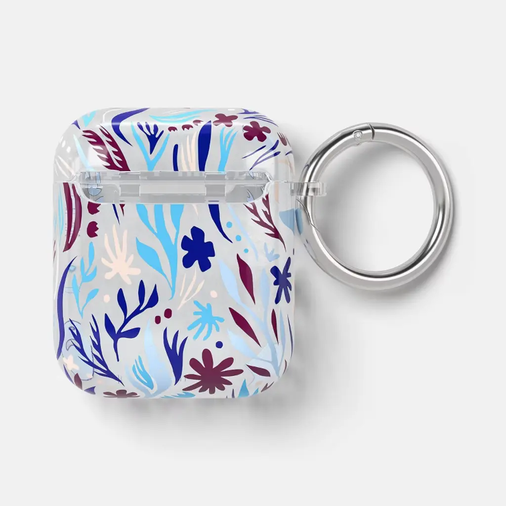 Airpods (1/2 Generation) Case - Heyday™ Botanical Blue: Tpu Lightweight Design, With Carabiner