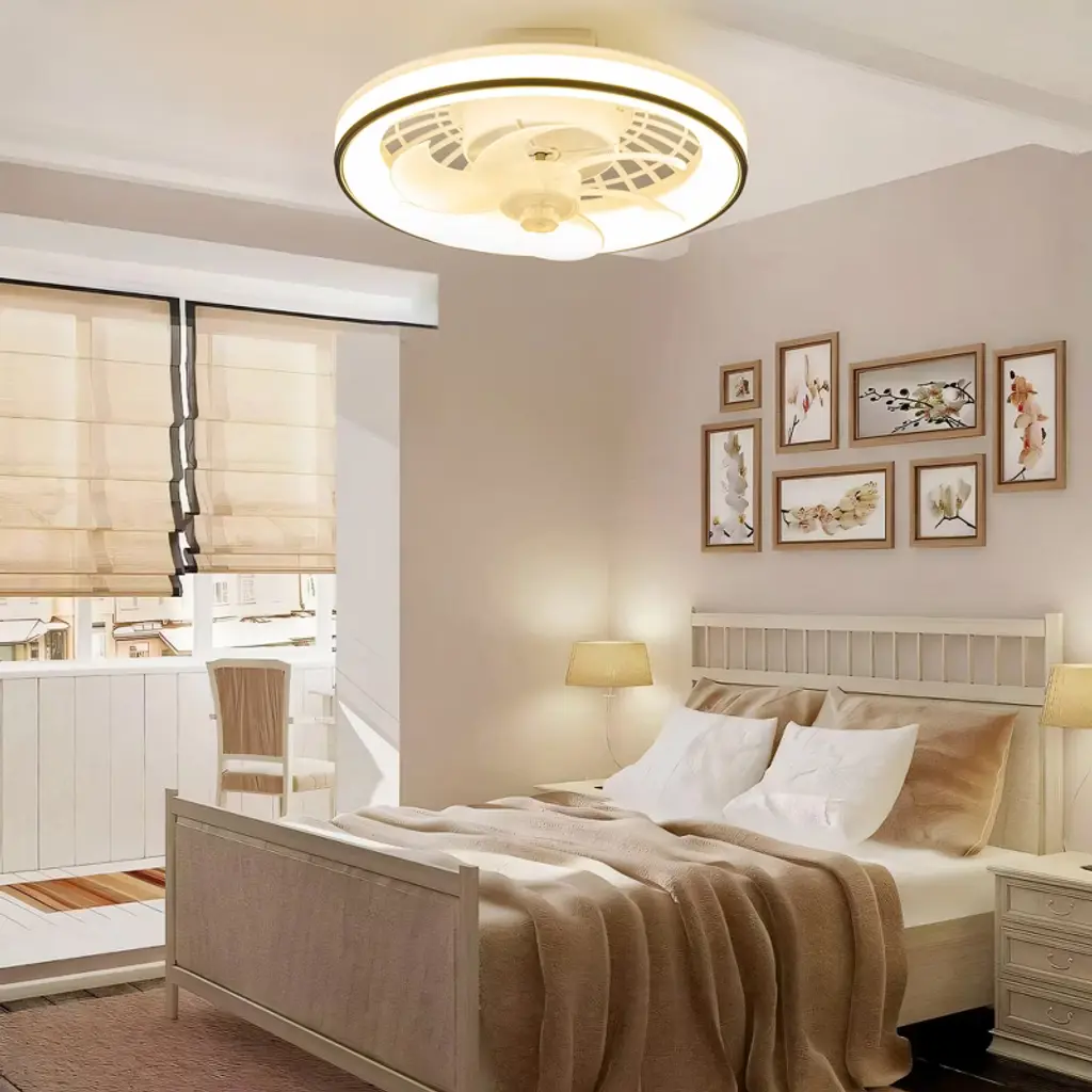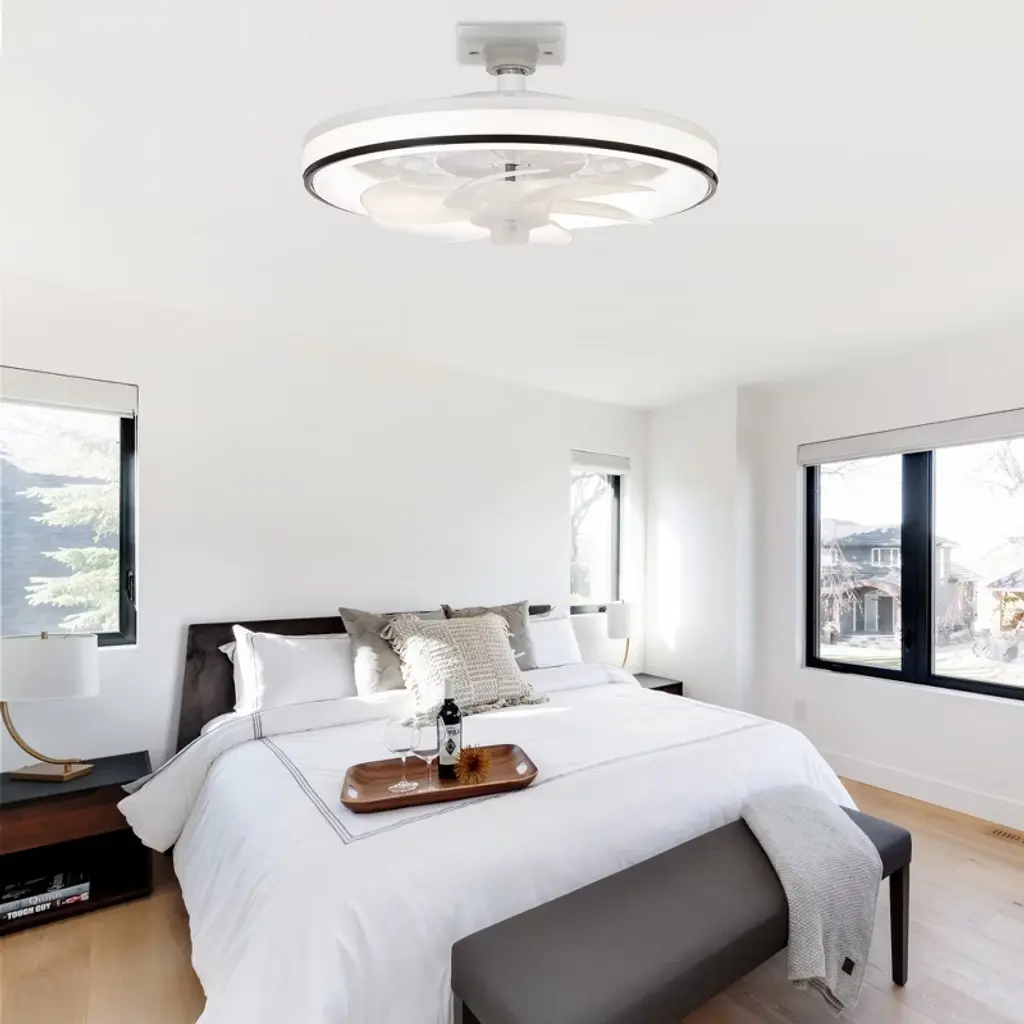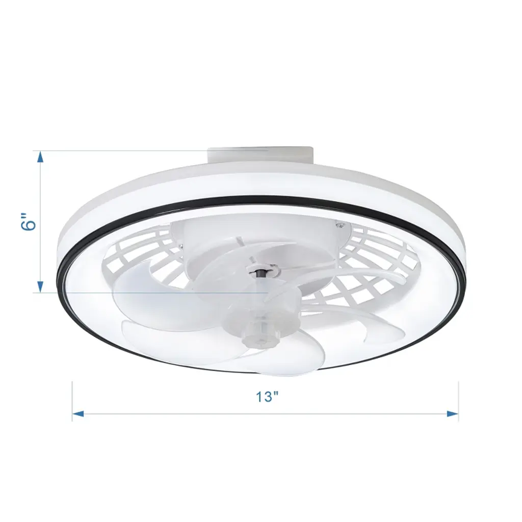 This 13-inch enclosed ceiling fan adopts modern design and high-quality ABS material, it is very suitable for decorating your house and durable. The recessed ceiling fan with light integrates the functions of the chandelier and ceiling fan. The enclosed ceiling fan with light and remote control is perfect for outdoor patio porch, indoor dining room living room kitchen bedroom office and small room.