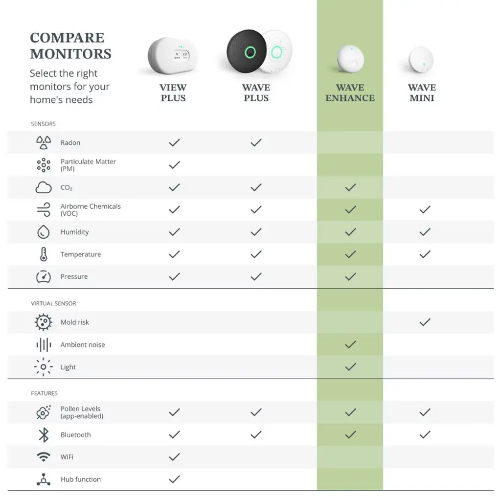 Airthings Wave Enhance Indoor Air Quality Monitor
