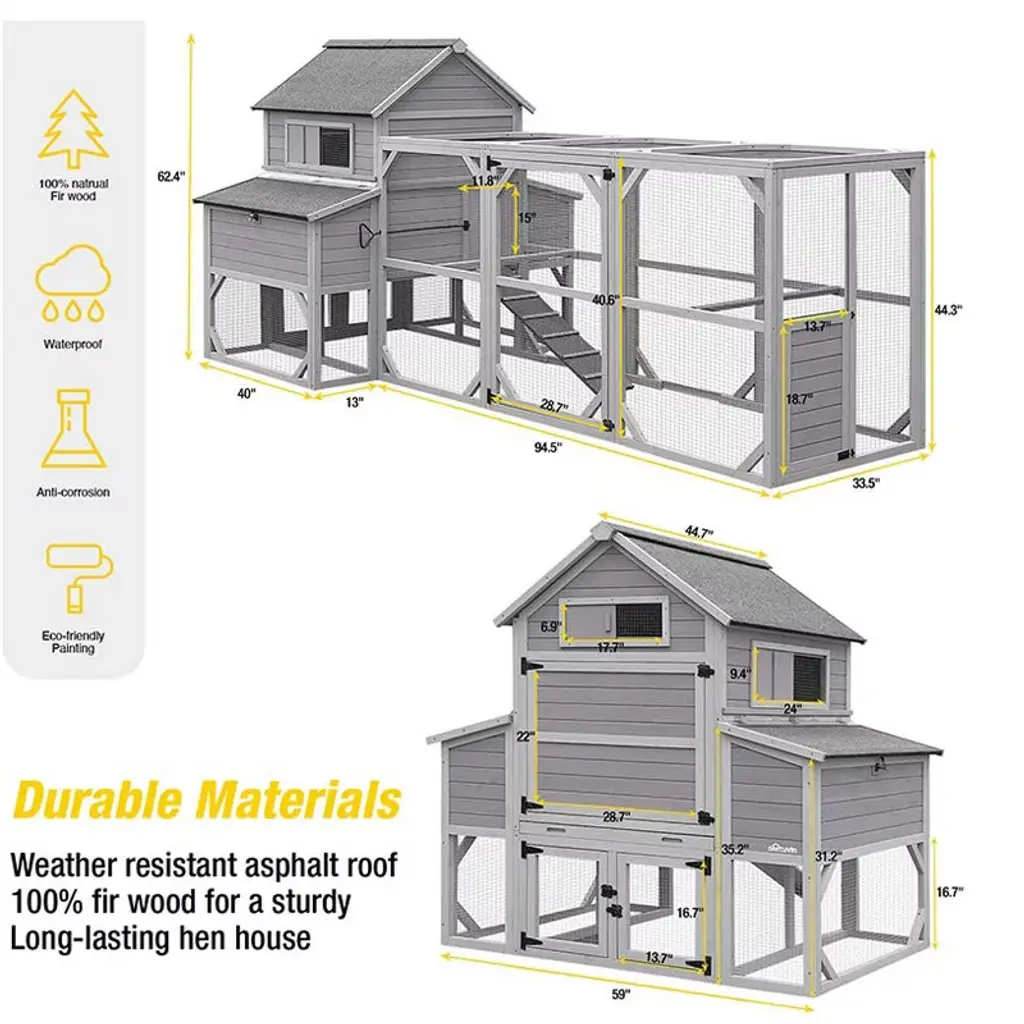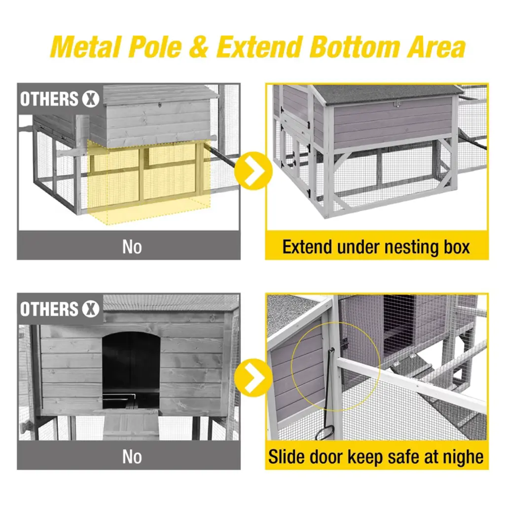 Upgrade your backyard farming game with the premium Aivituvin AIR46 Large Chicken Coop with Run. Designed for the comfort and safety of your feathered friends, this versatile and sturdy coop and run is equipped with a range of features to ensure convenience and longevity. As pet parents, you understand the importance of choosing the right chicken coop for your beloved hens, chickens, chicks, and ducks. That’s why Aivituvin offers a variety of options to meet your specific needs. This coop features ample vents that help to reduce moisture and keep your chicks healthy. The anti-slip ramp has a bottom grip and wooden blocks so your beaked buddies can easily find their footing. From top to bottom, inside and out, this coop is designed for your winged wonders. Get your own chicken coop here and give your flock the home they deserve.