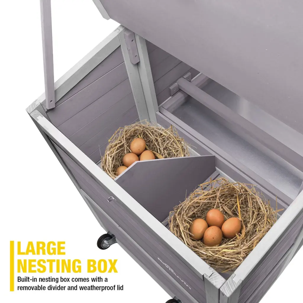 The Aivituvin AIR31-W Large Chicken House with Wheels elevates your backyard farming setup. Designed for the comfort and safety of your feathered friends, this versatile and durable coop is equipped with a range of features to ensure convenience and longevity for your flock. Like the large outdoor activity space this chicken house offers with a pen under the nesting box. This keeps the box elevated and adds safety from predators. Plus, the asphalt roof is weatherproof so it’s durable and protects your beaked buddies. You’ll also appreciate the two-section nesting box with an easy way to deposit and collect eggs. And, the wheels on this coop mean it’s easy to move.