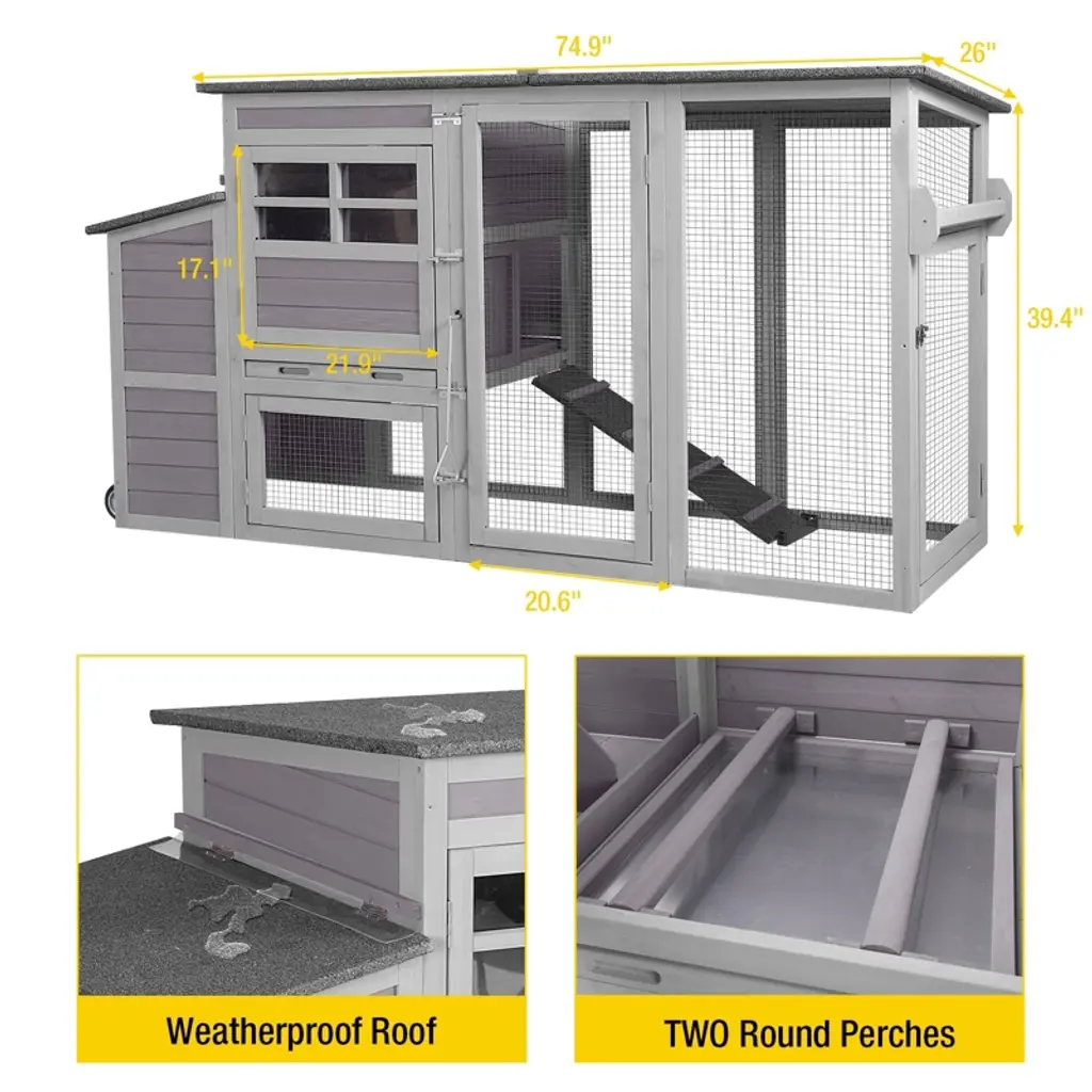Aivituvin 74.9" Large Chicken House With Wheels For 2-3 Hens-air31-w