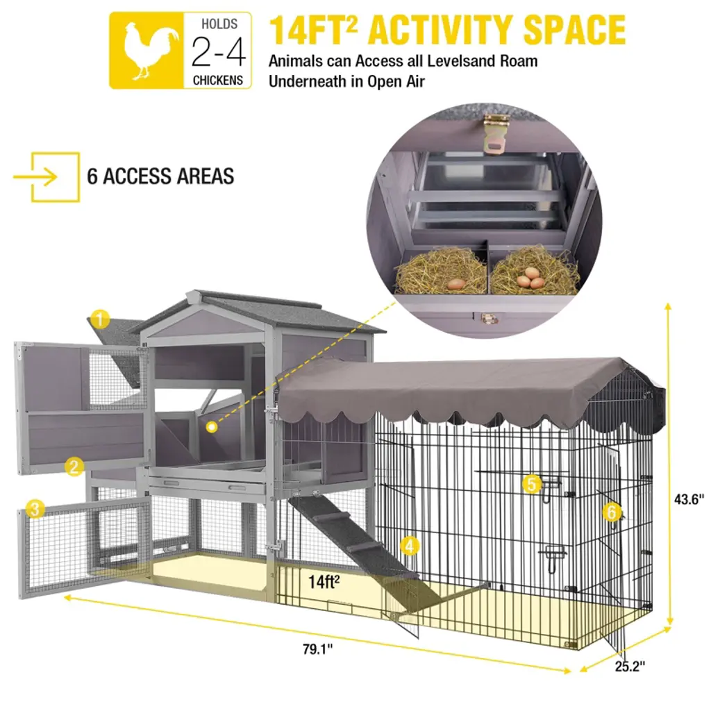 Aivituvin 79.1" Wooden Chicken Coop Wheels With Metal Chicken Run For 2-4 Chickens (Inner Space 14 Ft2)- Air7008