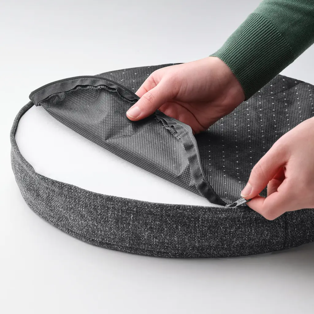ÅKERVINDEFLY Chair pad - dark gray 15 ". The cover is easy to keep clean as it is removable and machine washable. You sit comfortably since the soft memory foam filling distributes your weight and shapes to your body. The backing keeps the chair pad firmly in place.