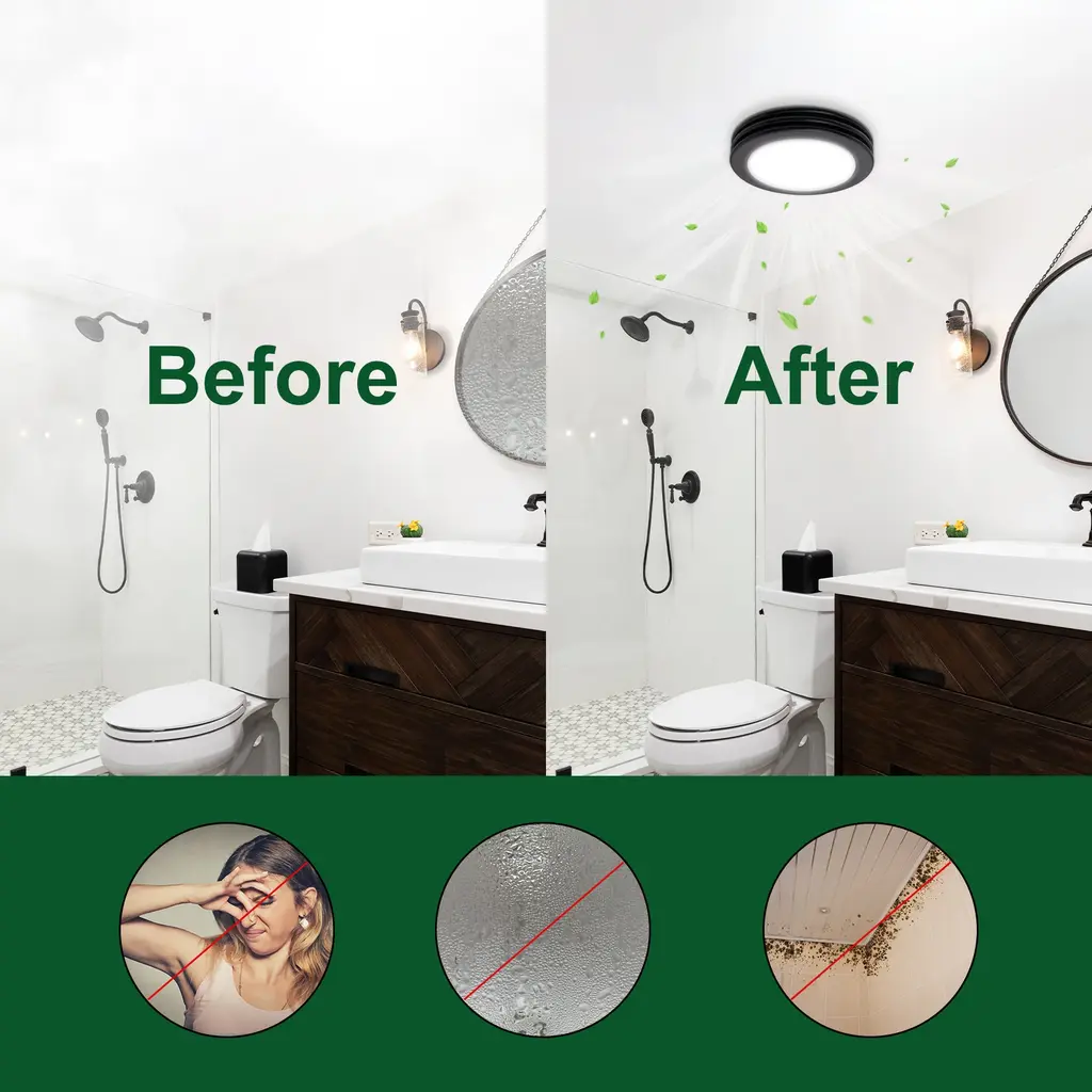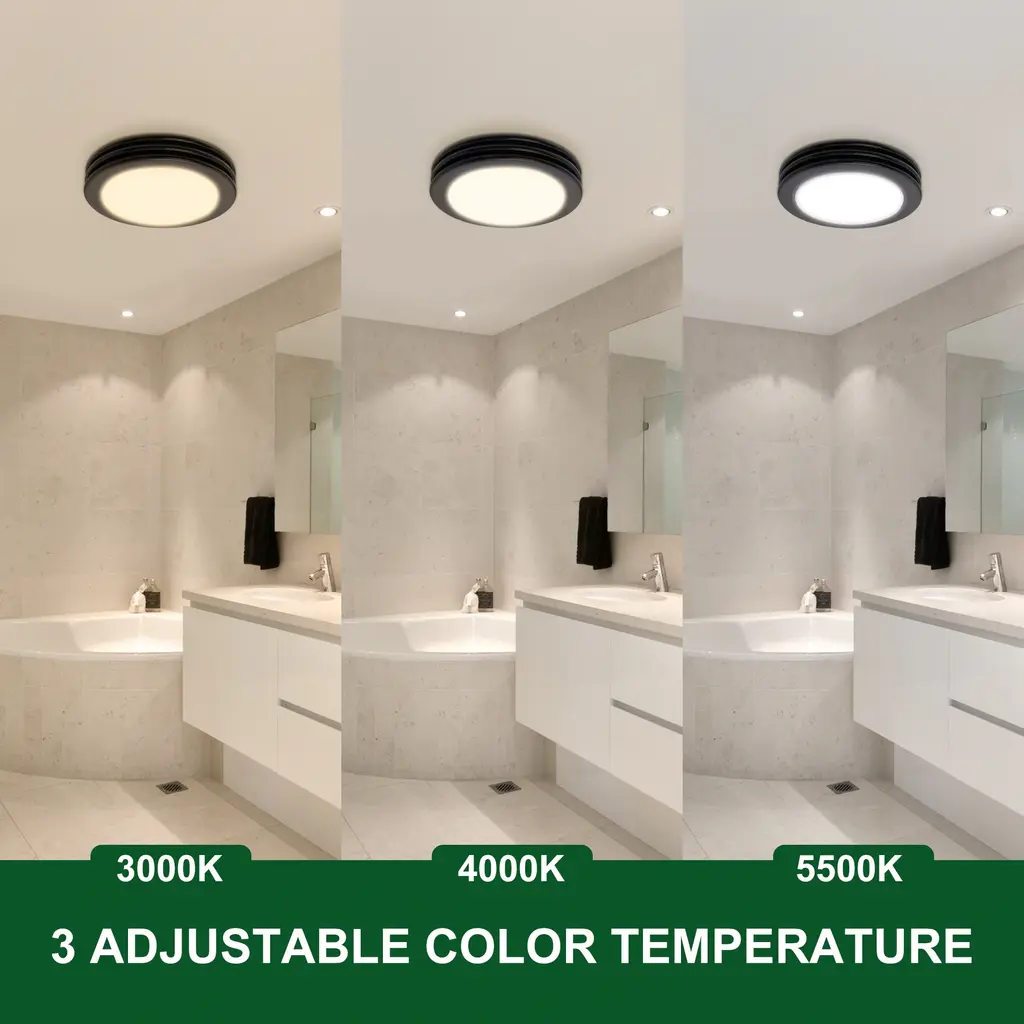 ULTRA-QUIET AND POWERFUL SUCTION - Akicon exhaust fan operates with 80 CFM at 2.0 sones which is ultra quiet and powerful to eliminate moisture and odors in the bathroom to ensure comfort in your home. It is powerful enough for rooms up to 90(Sq. Ft.) 3CCT LED LIGHT WITH NIGHT LIGHT - The bathroom vent fan with light can be customized your experience by choosing the color temperature in 3 options (3000K, 4000K, 5500K). And the 3.5W 2700K night light will help you to find your way through the room in the darkness. EASY INSTALLATION - The bathroom fans for ceiling is easy to install or replace existing product for DIY'ers with no attic access required. Housing Dimensions 8.37" x 8.12" x 5.75". Light Cover Size is Dia 13.19". Click the installation guide on this page for more detailed and professional instruction. DECORATIVE - The modern design of Akicon's exhaust Fan is versatile enough to suit a wide range of bathroom styles. By using Akicon integrated Switch with humidity sensor(sold separately), you can effortlessly control the 3CCT light, night light and exhaust fan. HIGH QUALITY & PERFORMANCE - Be confident in the quality and construction of our products. The bathroom fan light combo is UL, HVI Listed and Energy Star Certified. All Akicon products come with a best-in-class customer service team to make your shopping experience smooth and comfortable. 3-Year Limited Warranty.