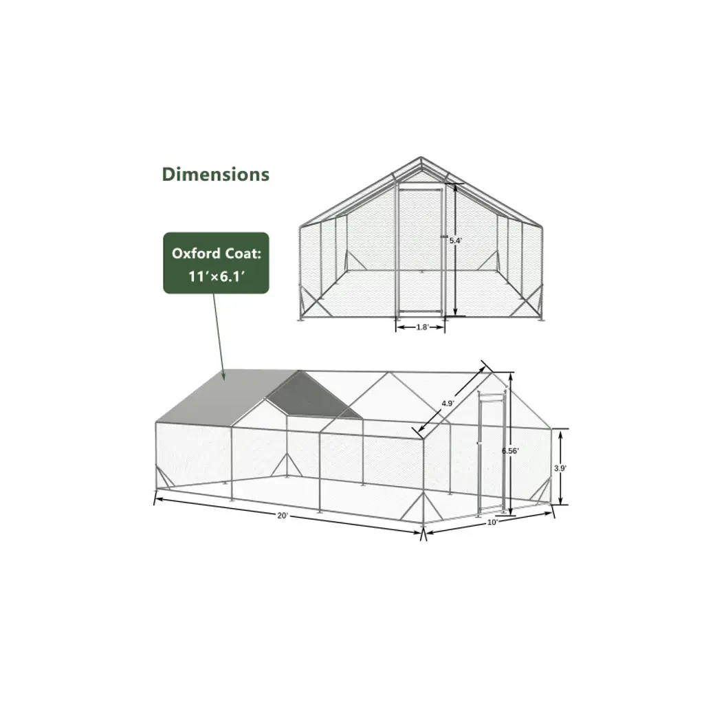 Our large metal chicken coops feature sturdy steel frames and thick PVC-coated metal mesh, built to withstand long-term outdoor use while protecting chickens from predators. Additionally, the frame and mesh prevent rust and wear in the coop, ensuring a clean living environment for both animals and owners.
