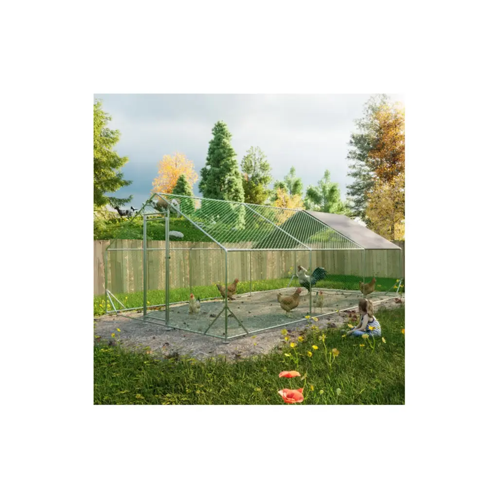 Akoasm 240.00 In. W Large Metal Chicken Coop With Waterproof And Anti-ultraviolet Cover For Outside-silver