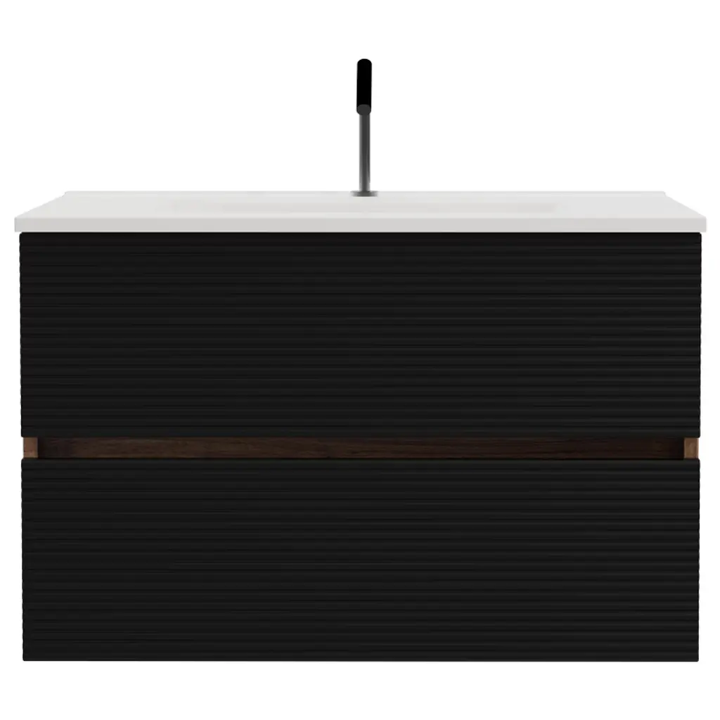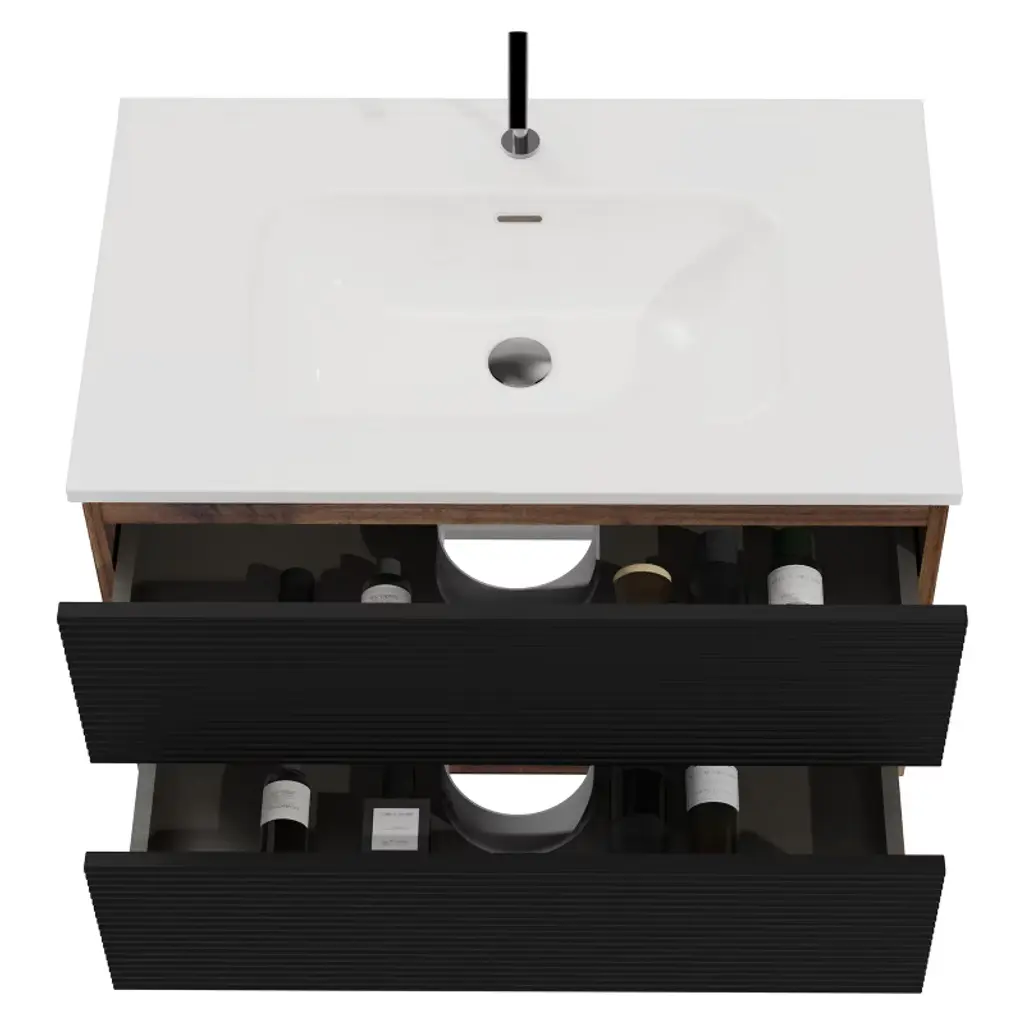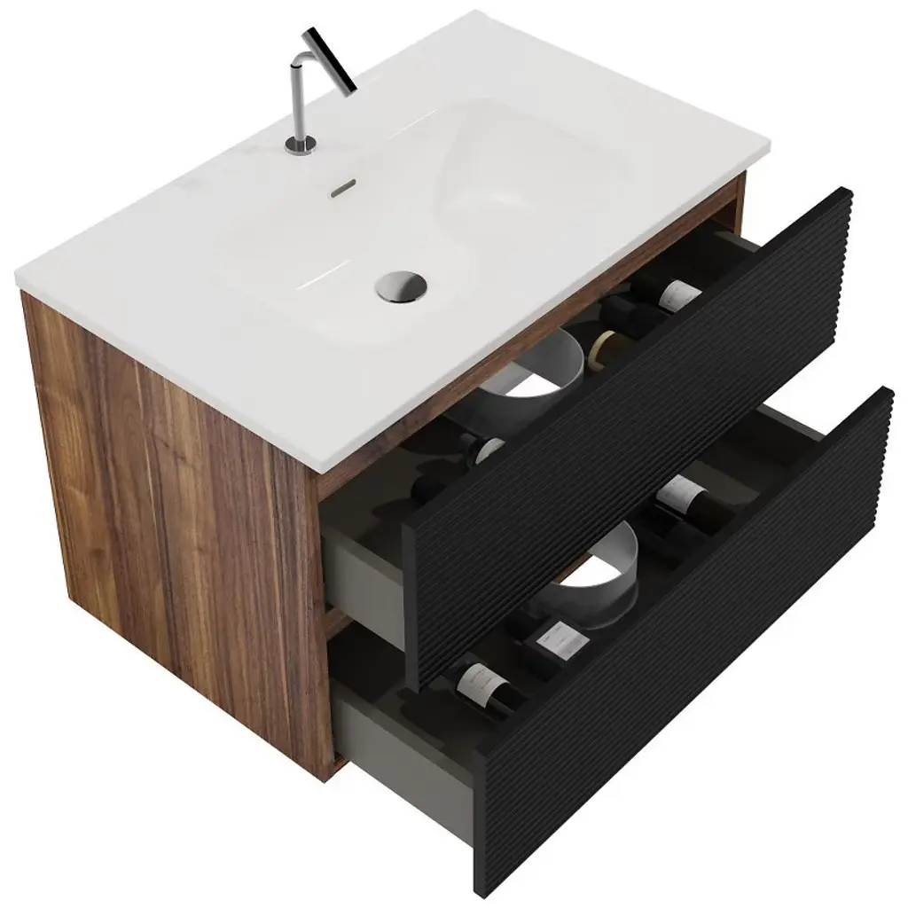 Akoasm 30 Inch Floating Bathroom Storage Cabinet With Integrated Ceramic Sink-black+walnut