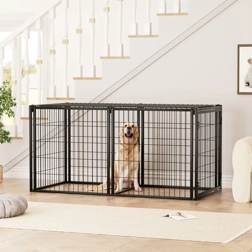 This 63-inch black puppy crate is based on the core of “safety guarding + space adaptation” to accurately meet the needs of small and medium-sized dog families for indoor pet-raising - the main body is made of thickened metal mesh welded molding, with a tight mesh gap, which not only prevents puppies from chewing to escape, but also ensures that The golden length of 63 inches provides ample space for small and medium-sized dogs (such as corgi, bichon, teddy, etc.) to stand, turn around and lie down without any sense of constriction, and it does not take up too much space for indoor placement.