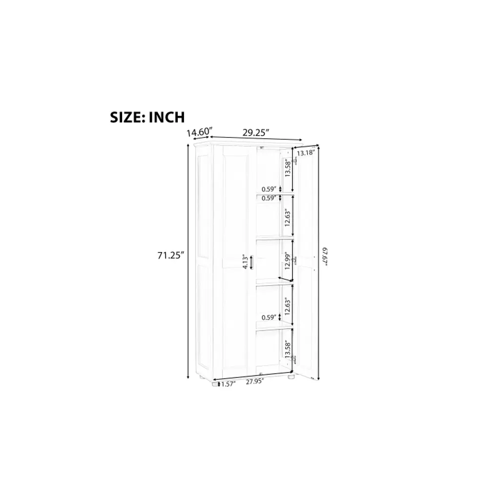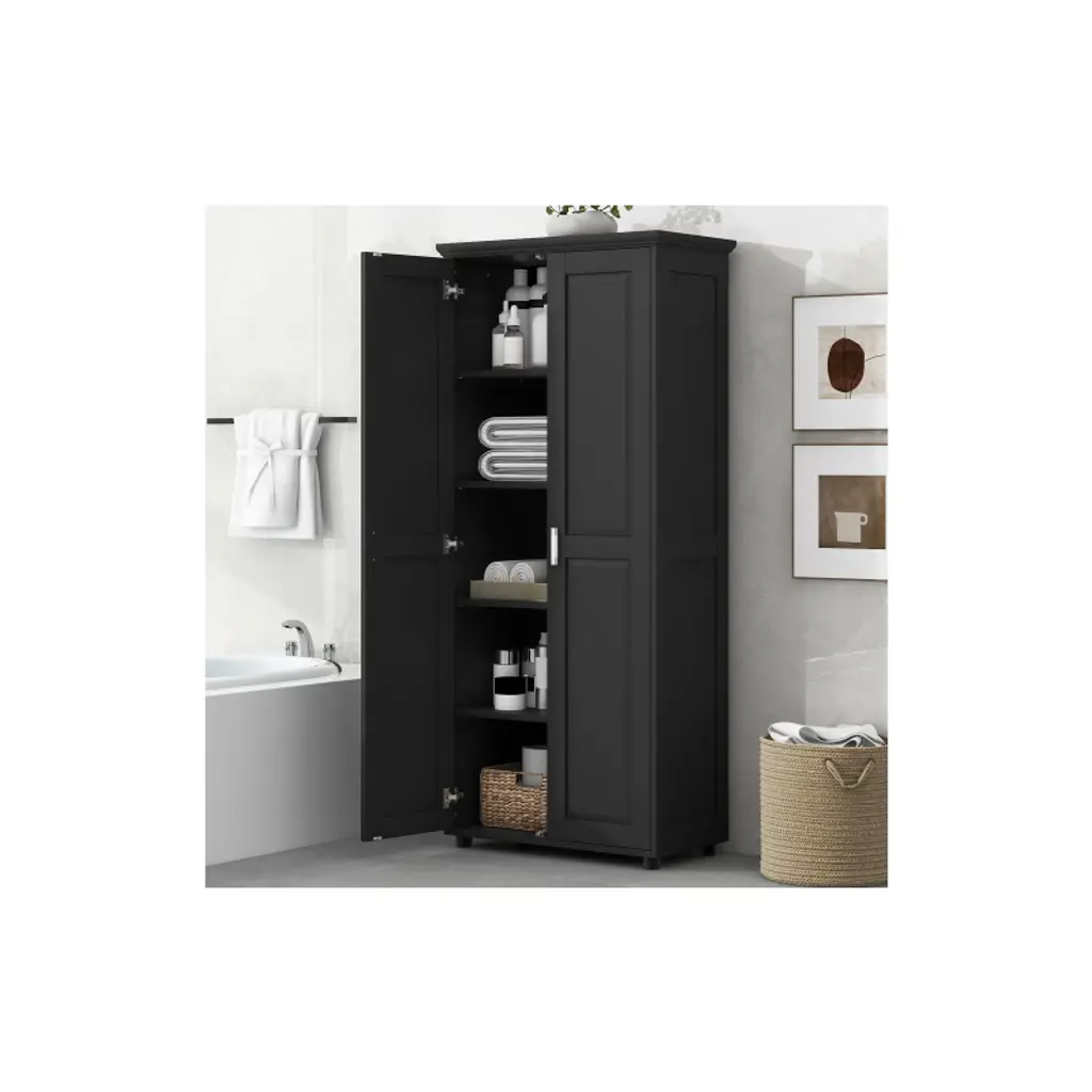 Akoasm 71.25 In. H Mdf Double-door Storage Cabinet With Adjustable Shelves For Bathroom & Office-black