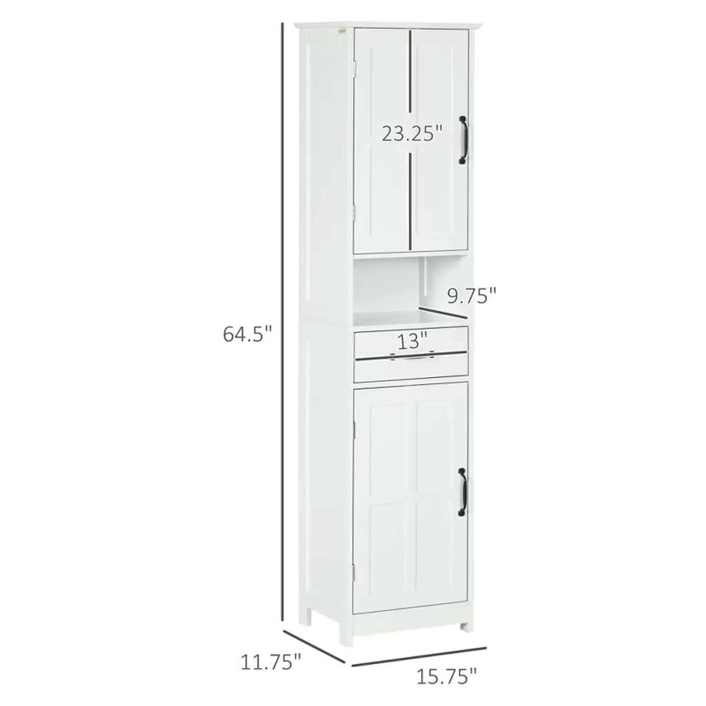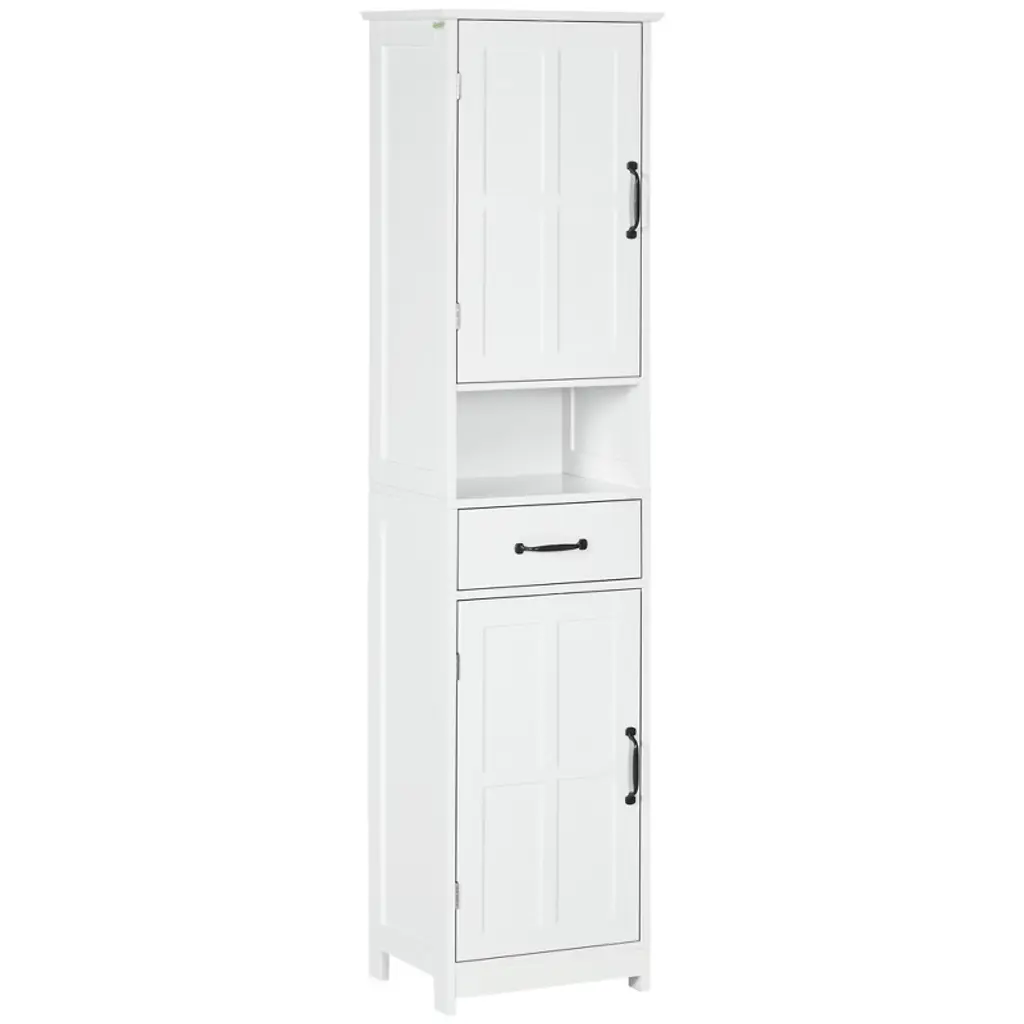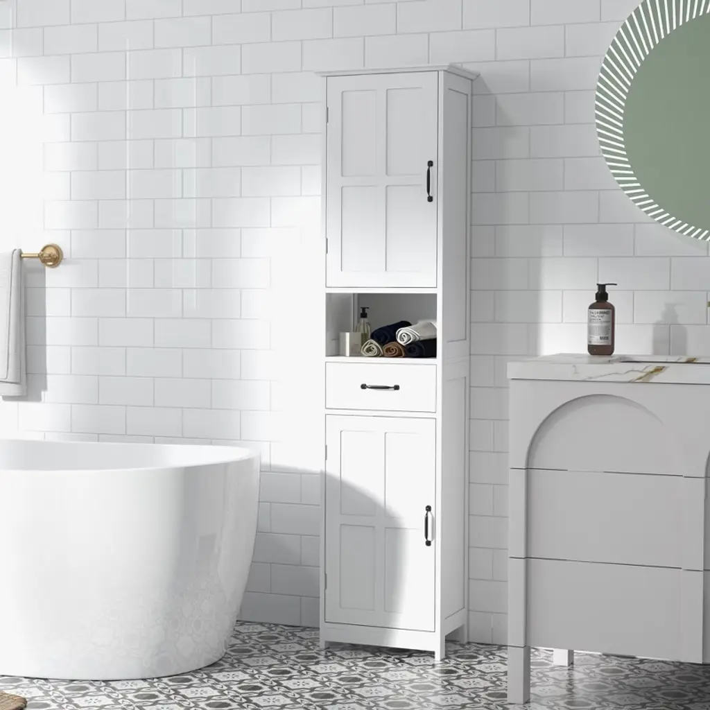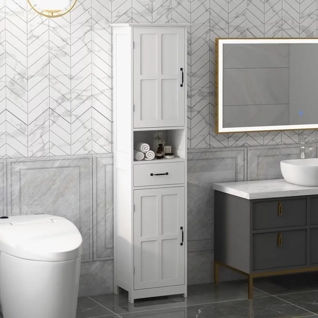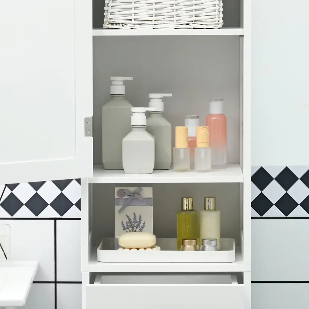 Akoasm Bathroom Storage Cabinet With Open Adjustable Shelves, Drawer & Doors-white