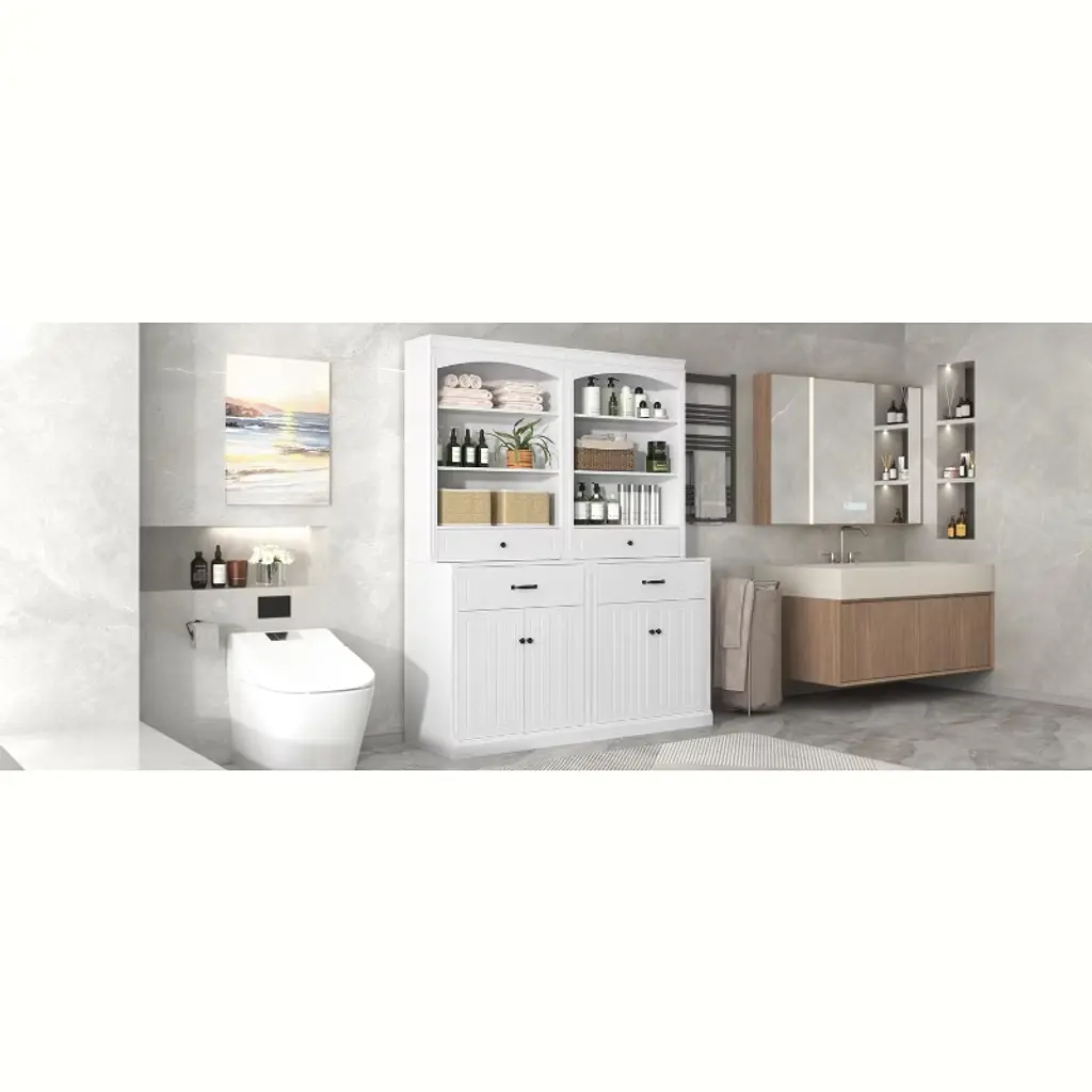 Akoasm Mdf Combination Bathroom Storage Cabinet With Doors£¬6 Open & Adjustable Shelves£¬and Drawers-white