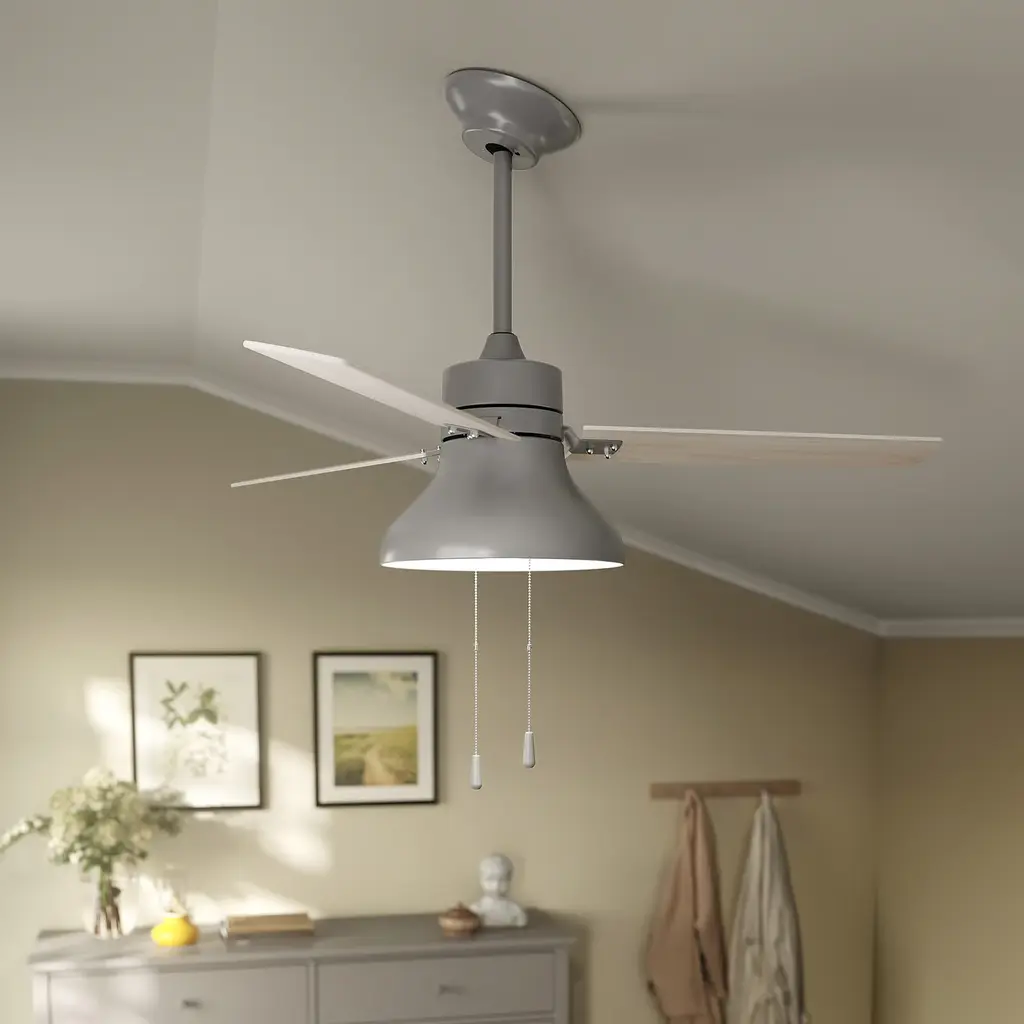 AKTERSTAGAD / BRUNALGER Ceiling fan w extension downrod - wood effect gray. This ceiling fan has a matching extension down rod ─ perfect if you have a ceiling height of more than 8 feet. To circulate air in your large sized rooms, this ceiling fan with three 52-inch blades is the perfect choice.