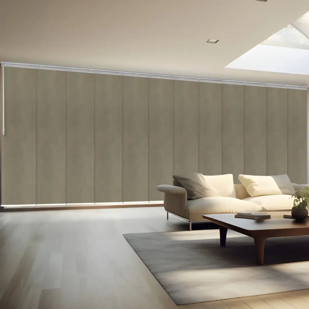 Central Design Products is pleased to introduce a new innovative panel track that offers easy 2-way installation, adding an alluring style and refined touch to your home decor. The double rail design of the track is sleek, compact, and reduces the overall footprint and weight of the installation, eliminating bulky, intrusive window treatments. Adjusting the panel height is a breeze � simply trim the panel, re-attach the liner, and install the panel weight. Detailed instructions are included.The panel track also features a patented slider design, made with aluminum and fitted with bearings that allow for durable and smooth operation. The sliders are stacked closer together than conventional panel tracks, reducing light bleed coming from the gaps between panels. This track has endless uses from dividing rooms, garages, offices, and closets to decorating windows and patios. Available in smaller sizes including 3, 4, 5, 6, and 7 panels. Extends from 140-260� wide. Each panel measures 23.5" wide and 91.5" tall, with a total installation height of 94" (includes the 2.5" rail track). The track can be wall or ceiling mounted. The panels can stack on the left or the right. The clearance from the wall is extendable from 1.25� to 3.25� and projection from the wall is extendable from 3� to 4.25�. Alabaster panel is made from 70% Polyester 30% Acrylic, with a light filtering shade that blocks 80% of the light.