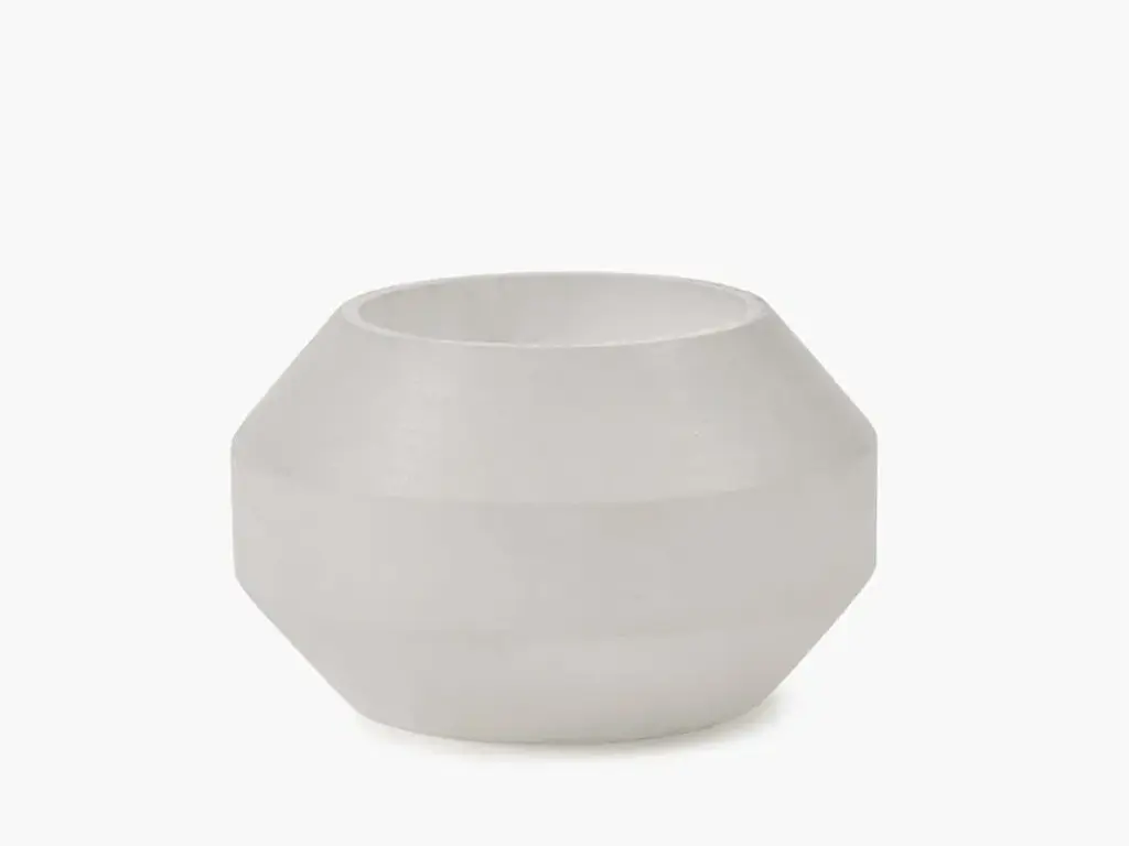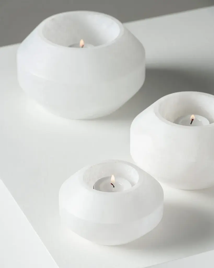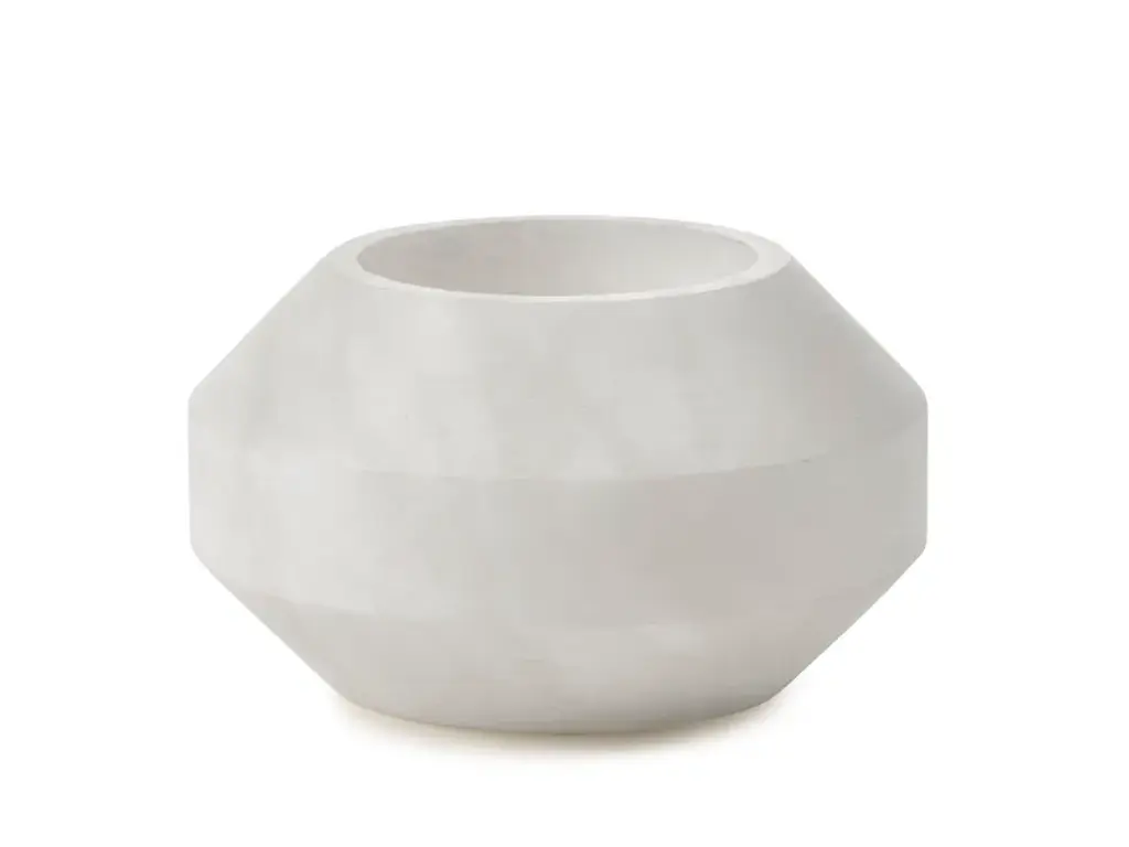 Alabaster is a tealight holder made of alabaster.The manliness of the geometric shape and the robust dimensions are balanced by the alabaster material. This soft, chalky stone is translucent and shapes these tea light holders.Eclectic, a world full of wonderful extremes based on a well-thought-out structure. That is the first thing that comes to mind for the accessories collection of Marie Michielssen. Serax ’s resident designer likes variety, both in style and in her use of materials and colours. From papier-mâché through concrete to porcelain, cheerfully coloured or in muted natural colours, inspired by constructivism or by the earth in its most rudimentary form, each collection is completely different.