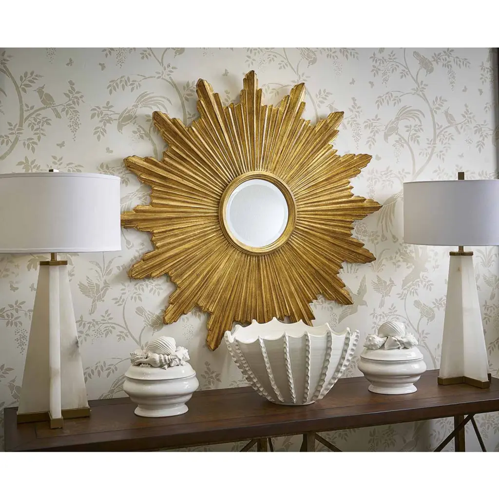 Cream - Antique Brass Finish. Alabaster - Iron Accents. . 9.5W X 9.5D X 34H