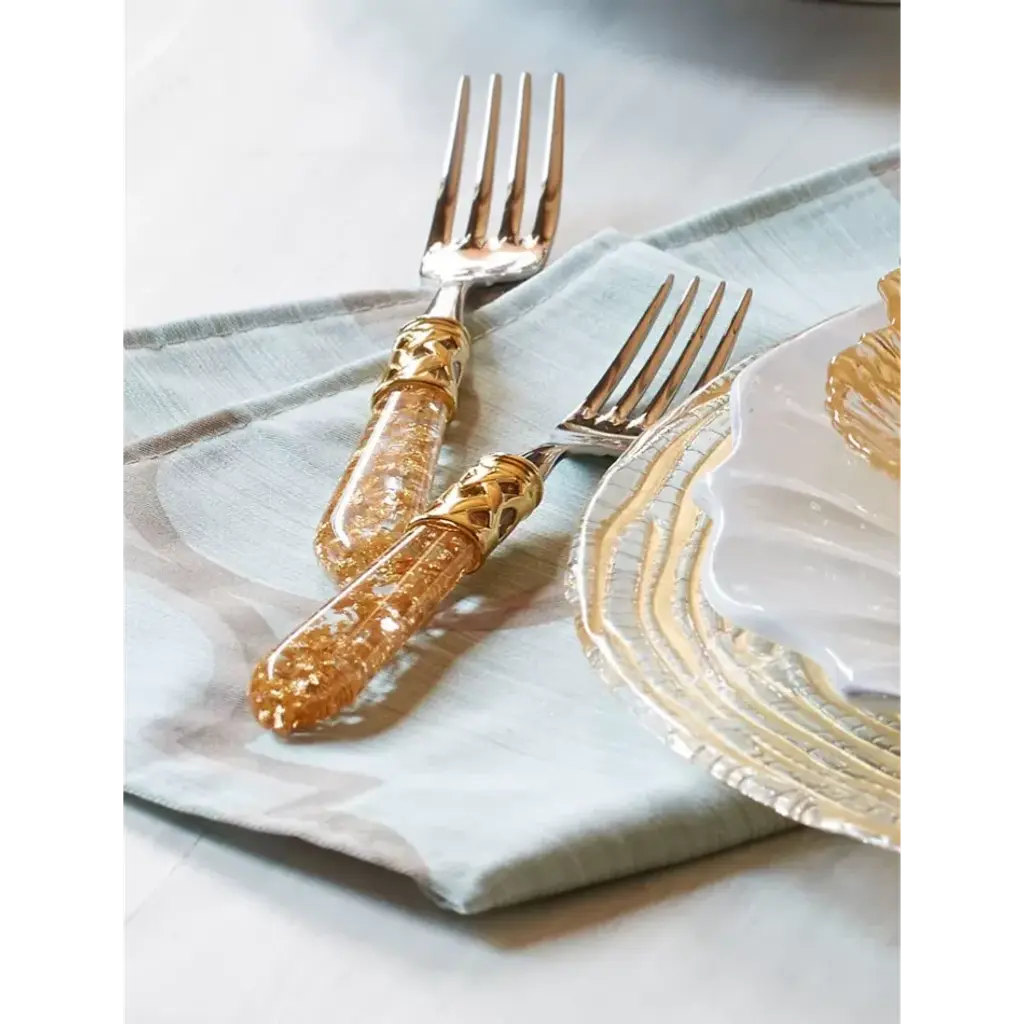 The Aladdin Brilliant Gold Fleck Pastry Server with gold lattice is a glamorous collection, featuring airy flecks of gold wrapped in intricate gold lattice. Since 1983, Vietri has specialized exclusively in Italian handcrafted ceramics, stainless and pewter flatware, mouth blown glassware, lamps, urns and planters. Families of artisans with 3 or 4 generations of history create these special pieces using centuries-old techniques. The subtle color from a paintbrush and the curving stroke of the artist's hand are never repeated in quite the same way, making each piece truly unique.