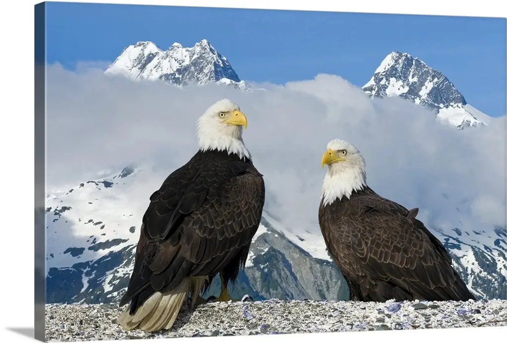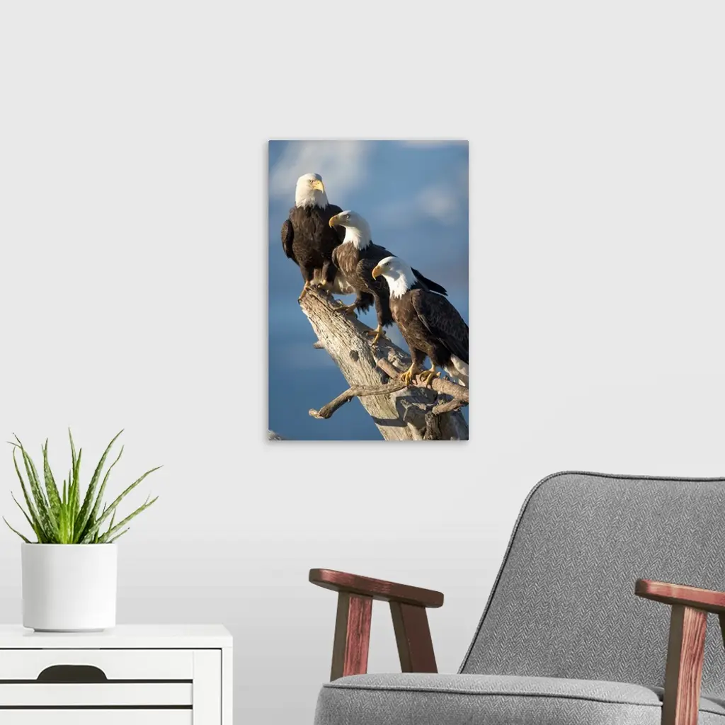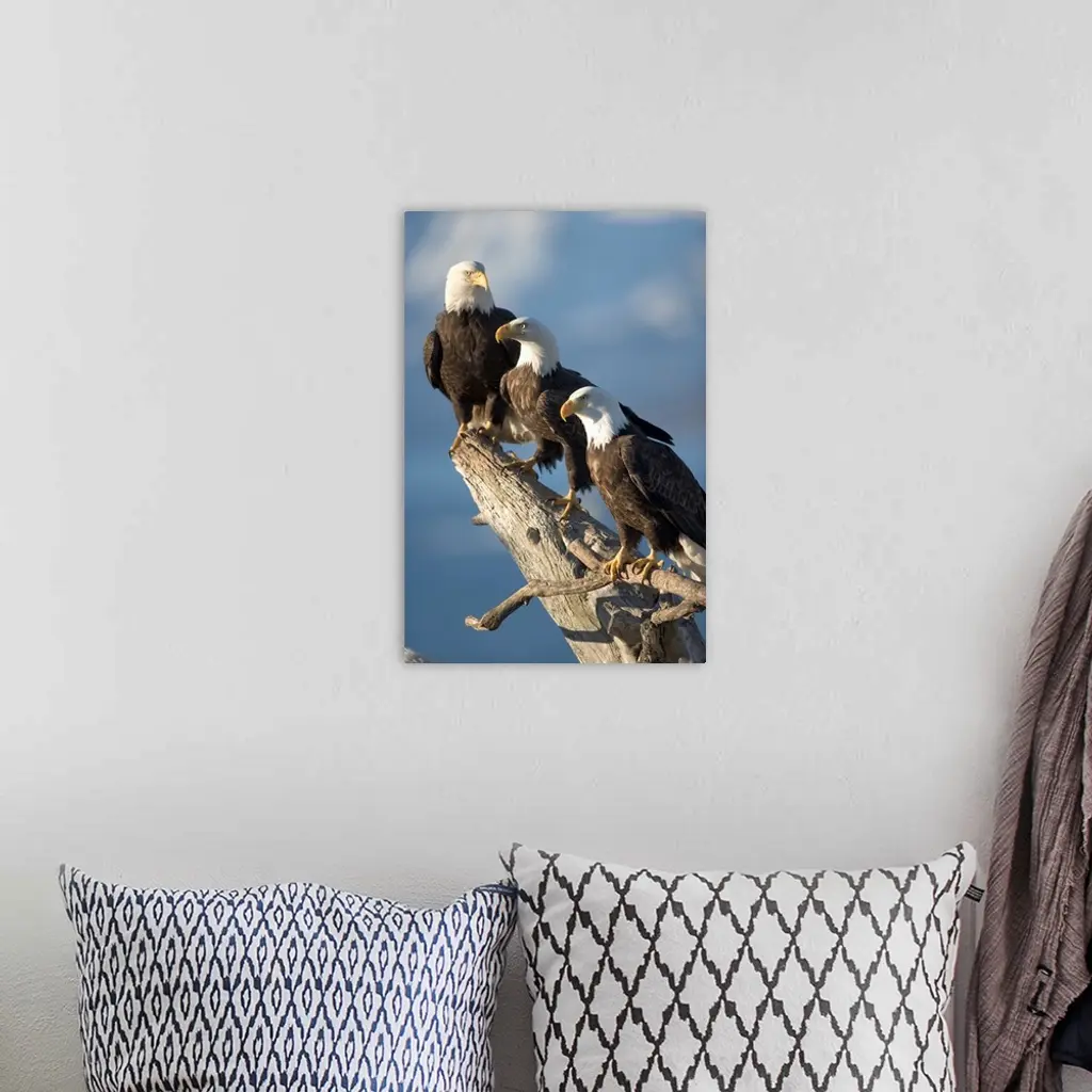 Alaska, Homer, Bald Eagles Roost On Driftwood Perch Along Kachemak Bay
