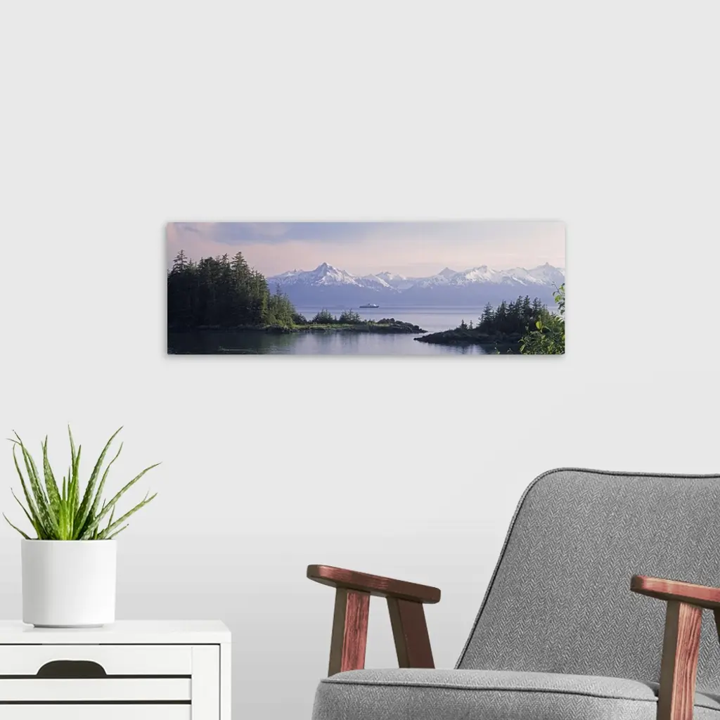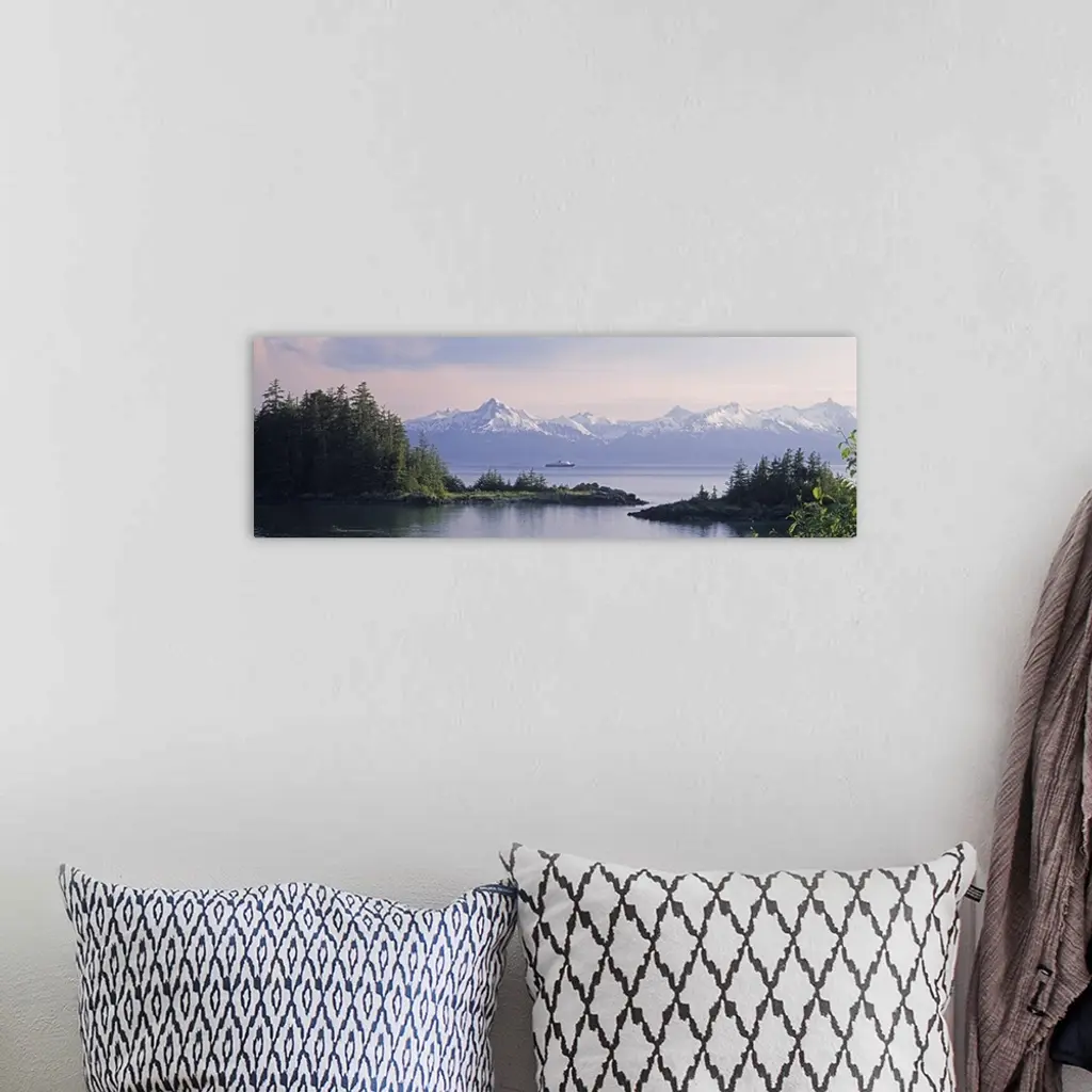 Alaska, Juneau, Lynn Canal, View of an Alaskan ferry on a lake wall art for home and office decor. Discover canvas art prints, photos, mural, big canvas art and framed wall art in GreatBigCanvas.com's varied collections.