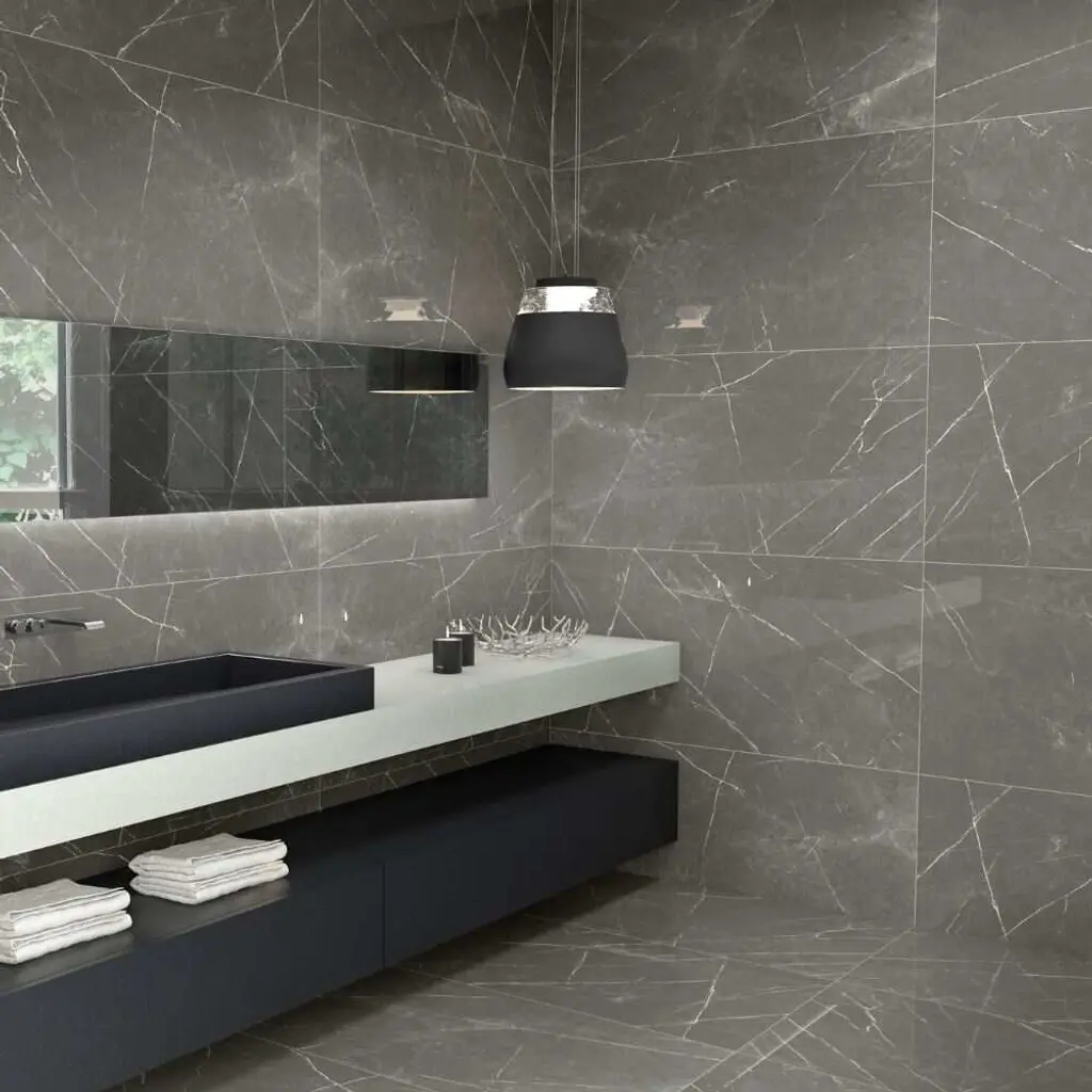 The Tile Life's Alastair is an elegant range of high-quality, large-format porcelains that reproduce HD images of beautiful marble slabs sourced from all over the world. Alastair is a polished, rectified porcelain that has 15 different faces. The rectified edge treatment is ideal for larger tiles calling for thinner grout lines and a more seamless look. The Tile Life Alastair 24 in. x 48 in. Porcelain Tile is available in Silver and Grey, offering a sleek, modern look for any space. Ideal for bathrooms, showers, kitchens, floors, and walls, this tile is approved for residential and commercial indoor installations, combining style with durability. FEATURES: DIMENSIONS: