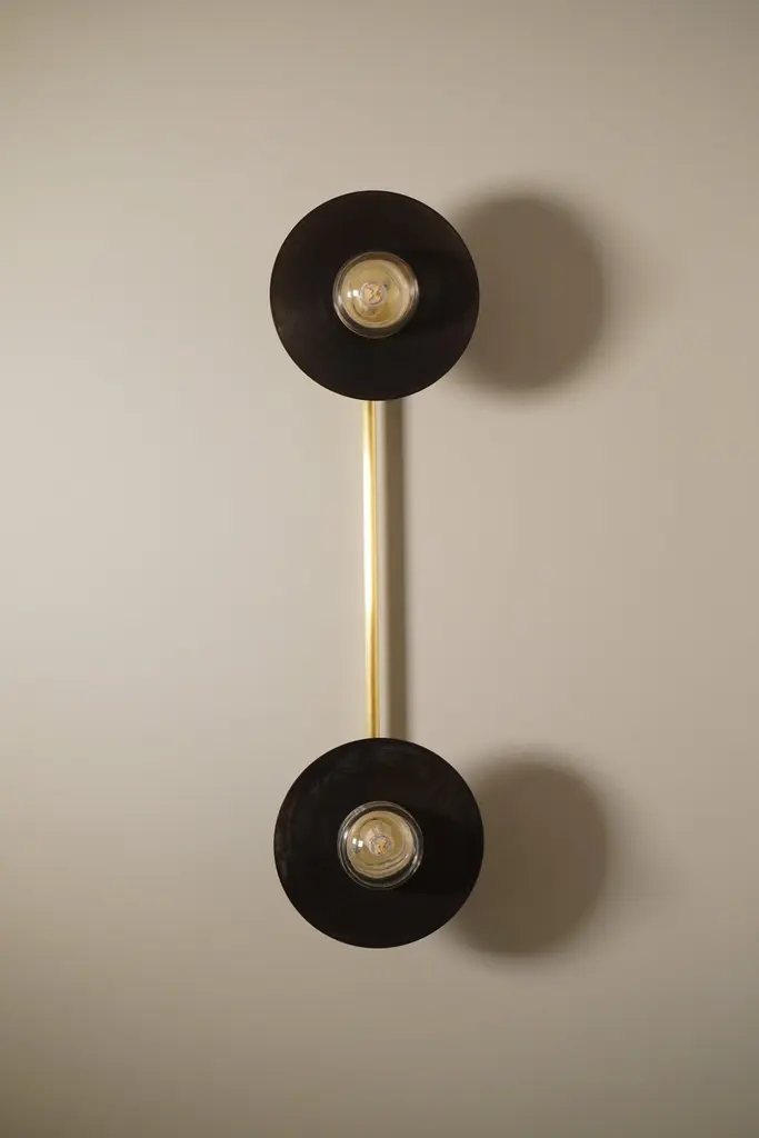 Alba Triple Wall Angle Light XL by ContainDimensions: D 22 x W 85 x H 11.5 cm. Angle 115º.Materials: brass, 3D printed PLA structure and optical lens.Also available in different finishes and dimensions (15 cm Ø x 85 cm x 11,5 cm / angle 115º and 22 cm Ø x 85 cm x 11,5 cm / angle 115º). Please contact us.All our lamps can be wired according to each country. If sold to the USA it will be wired for the USA for instance.“You are where you live” So, we decided to live in Mallorca. We are Mauricio Obarrio and Juan Peralta and Contain is our lighting and furniture design studio.This collection is the result of the collaboration between our studio, local artisans and the industrial sector; where creativity and simplicity creates a unique synergy and generates a narrative between the materials used and the pieces created. Our mission is to deliver artisan crafted, highly engineered, sophisticated yet simple lighting design solutions. Our studio's inspiration is fueled by an obsession with natural materials such as Brass, Glass, and Hardwoods along with a love for artisan craftsmanship.
