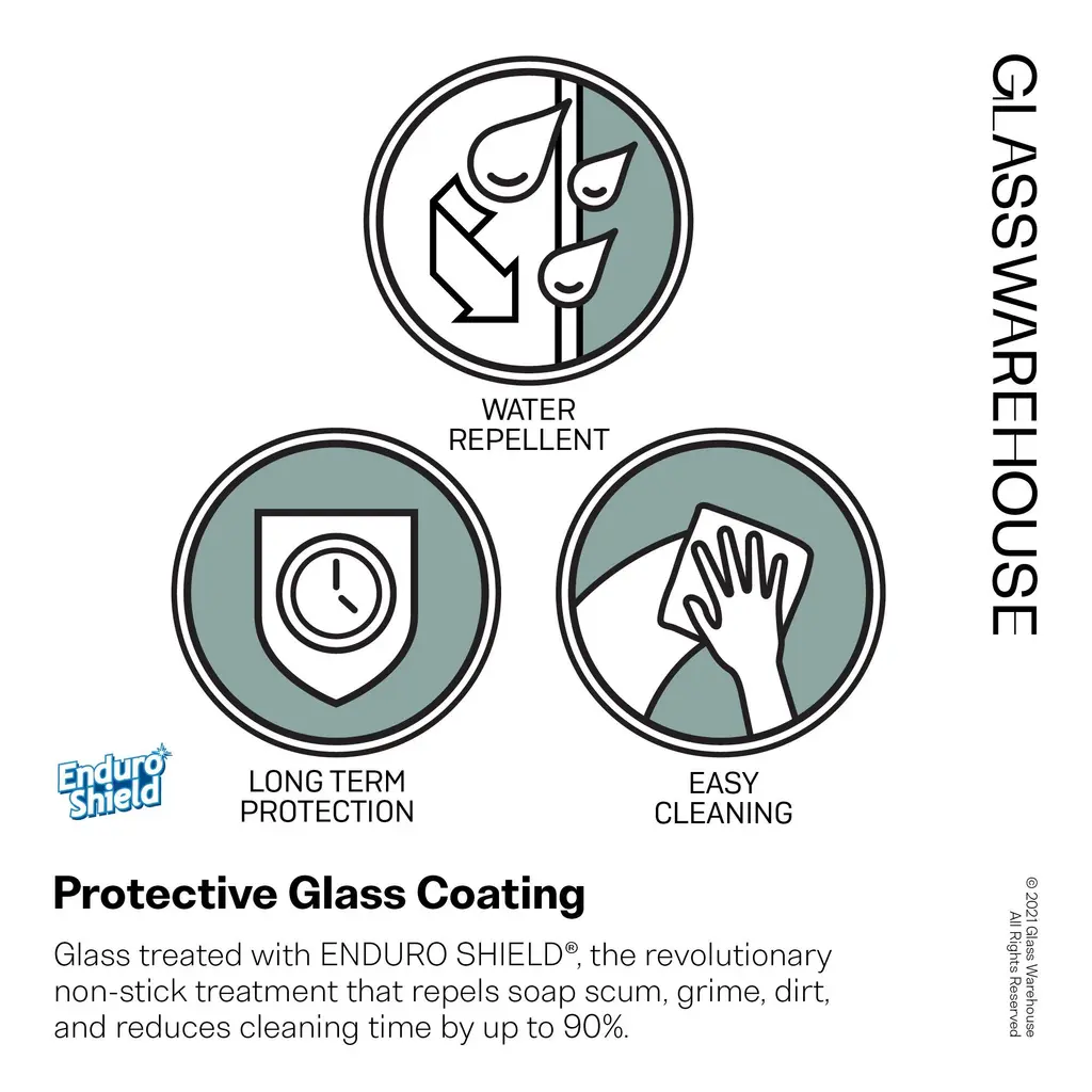 Perfect for the smaller shower enclosure, our Albedo wall-hinged shower door makes a stylish statement. Taller than most competitor shower enclosures, our frameless 3/8" tempered glass panels come in a standard 78" height. Glass is treated on both sides with EnduroShield coating, which aids in repelling water and soap residue, allowing the panels to be fully reversible. In addition, our superior quality solid brass hardware is available in a variety of color finishes to suit any bathroom. With our extensive range of frameless shower door and panel sizes, the Albedo by Glass Warehouse allows light to stream through the glass, giving your bathroom the luxury, high-end feel of a spa retreat.