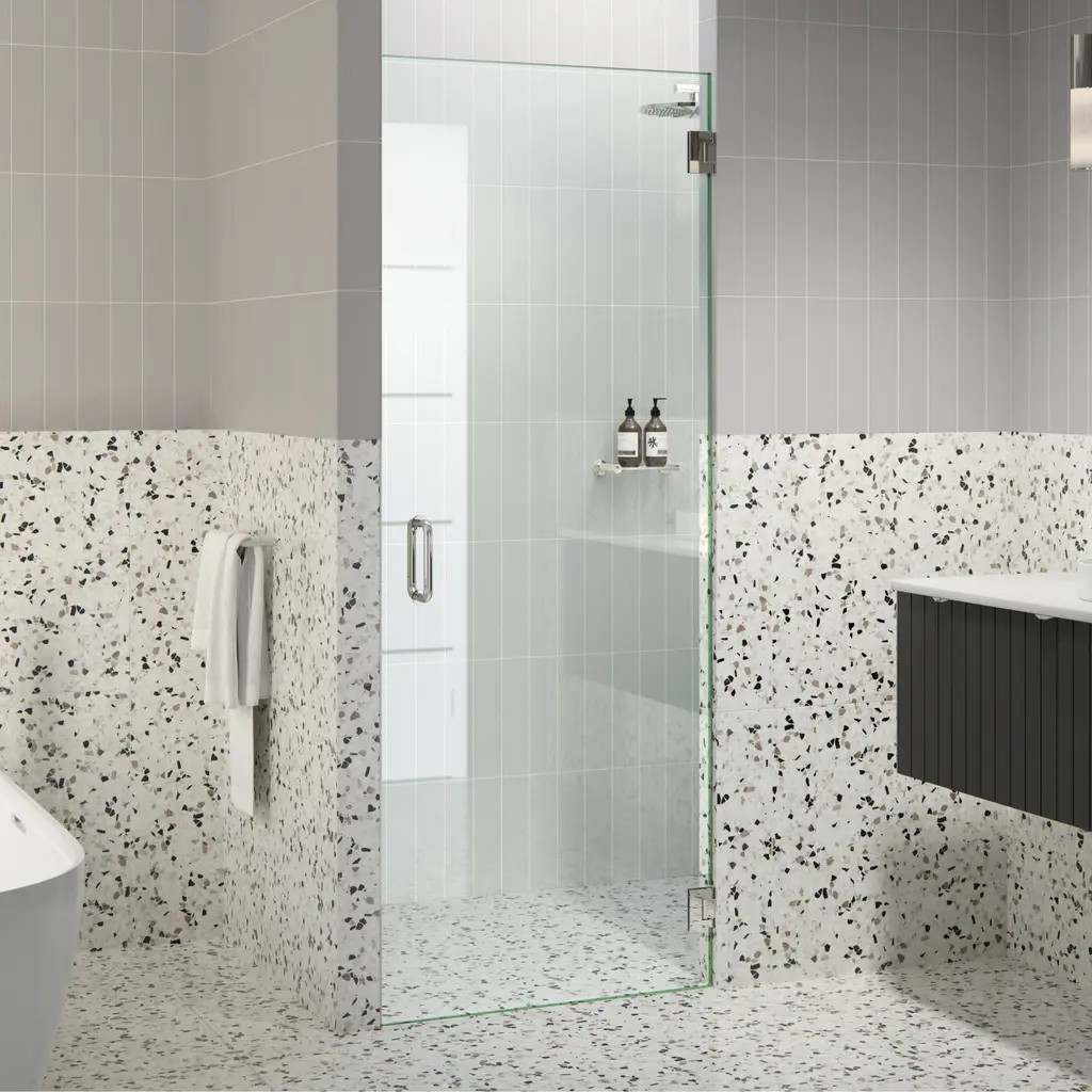 Albedo 26.5 In. W X 78 In. H Fully Frameless Hinged Shower Door - Width Adj 26.875 - 27.276 - Polished Nickel
