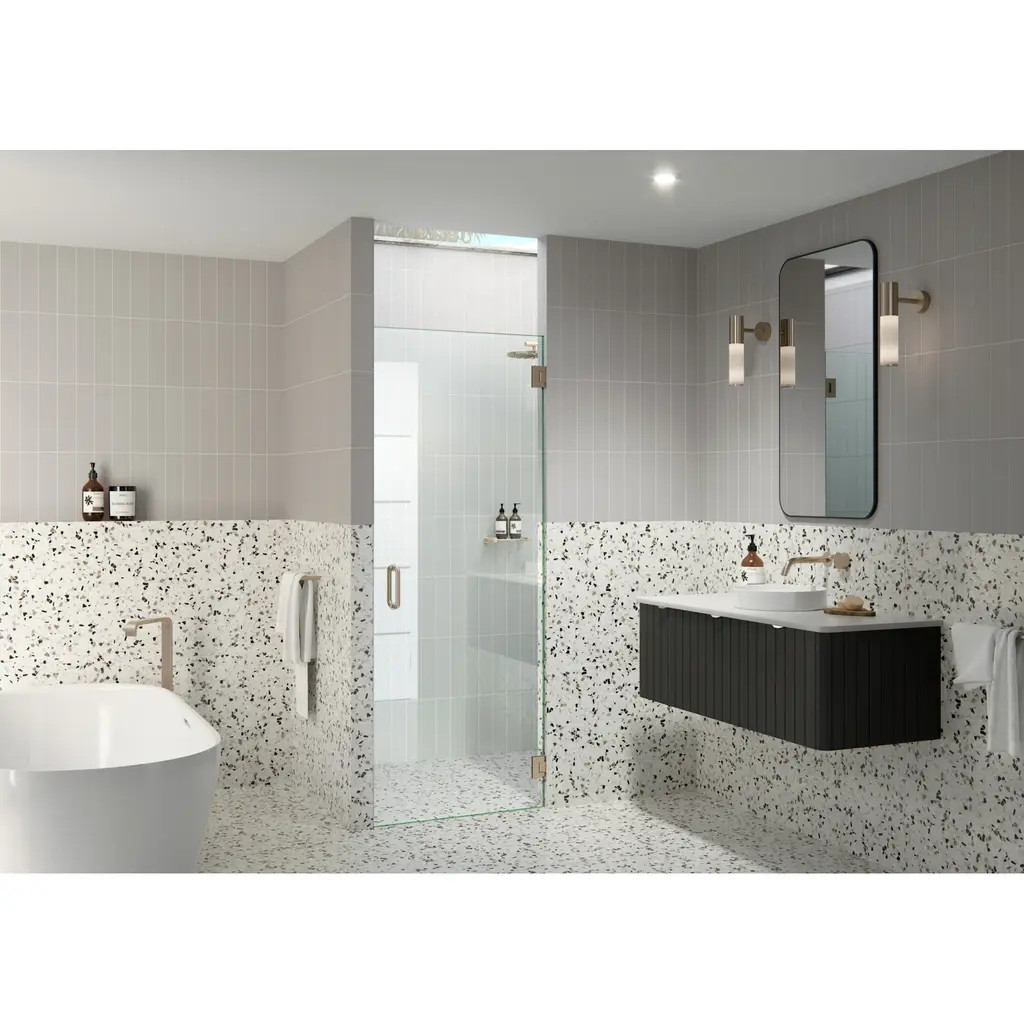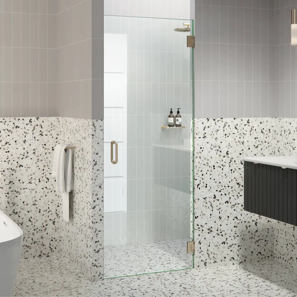 Perfect for the smaller shower enclosure, our Albedo wall-hinged shower door makes a stylish statement. Taller than most competitor shower enclosures, our frameless 3/8" tempered glass panels come in a standard 78" height. Glass is treated on both sides with EnduroShield coating, which aids in repelling water and soap residue, allowing the panels to be fully reversible. In addition, our superior quality solid brass hardware is available in a variety of color finishes to suit any bathroom. With our extensive range of frameless shower door and panel sizes, the Albedo by Glass Warehouse allows light to stream through the glass, giving your bathroom the luxury, high-end feel of a spa retreat.