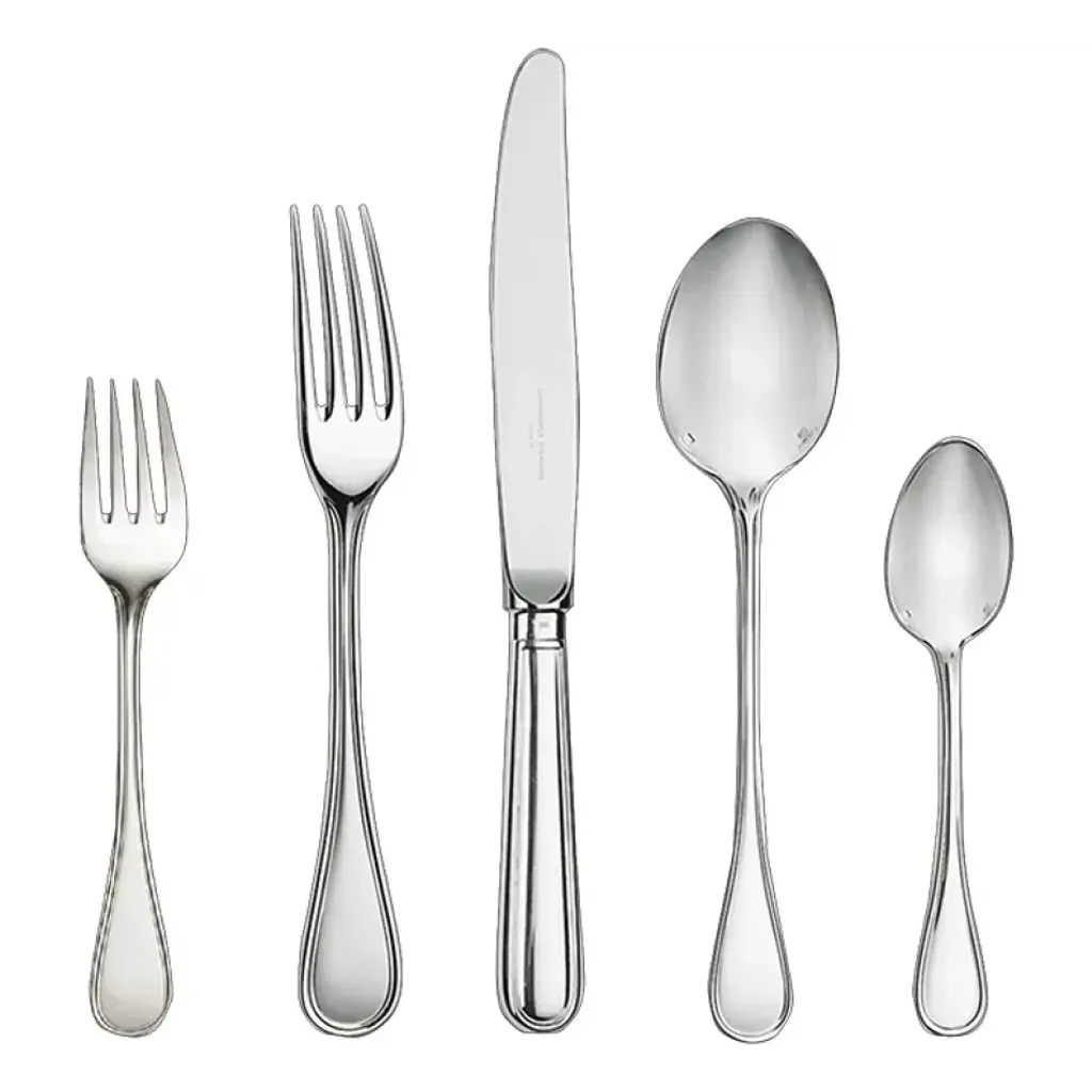 The Albi line, created in 1968, takes its inspiration from a French town located between Toulouse and Bordeaux and its famous cathedral known for its remarkable architecture, clean straight lines and single nave. Thanks to its creations in silver, Christofle is a symbol of luxury and elegance. Since its founding in the mid-19th century, it has been a continous innovative force and has infused each era with a new art of living. Thus, over time, this prestigious company has revolutionized styles, techniques, and methods for the production and distribution of silver plate and the decorative arts. A player in and privileged witness to the evolution of taste, customs, and traditions, Christofle has always seen its name associated with major creative trends, renowned artists such as Man Ray or Jean Cocteau, avant-garde architects such as Gio Ponti, and modernist silversmiths such as Lino Sabattini and Christian Fjerdingsatd, as well as present-day designers such as Andrée Putman, Martin Szekely or Ora ïto. Today, as in the past, whether gracing the tables of emperors, princes, or maharajas, in palaces, on board the Trans-Siberian Railway, Orient Express, or transatlantic ocean liners, or in the contemporary restaurants, Christofle continues to make an impression.