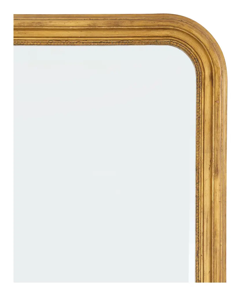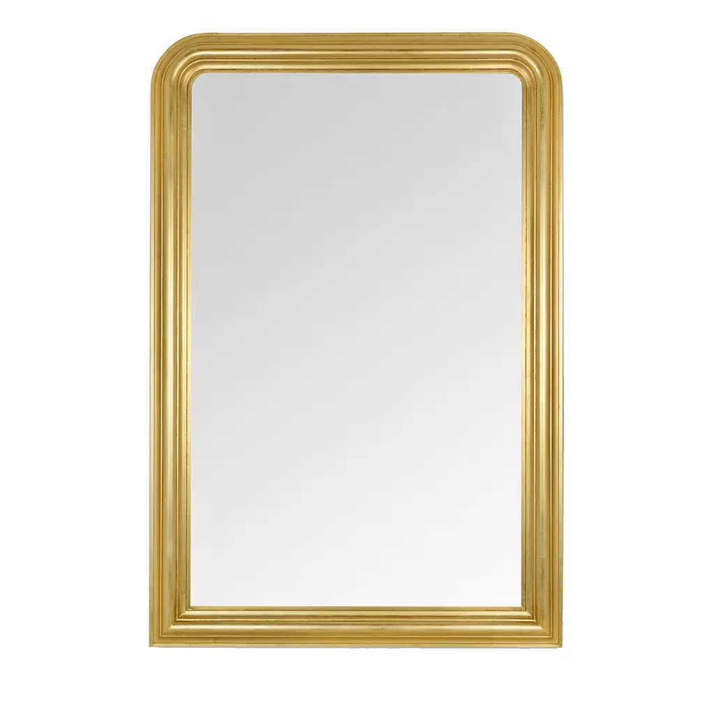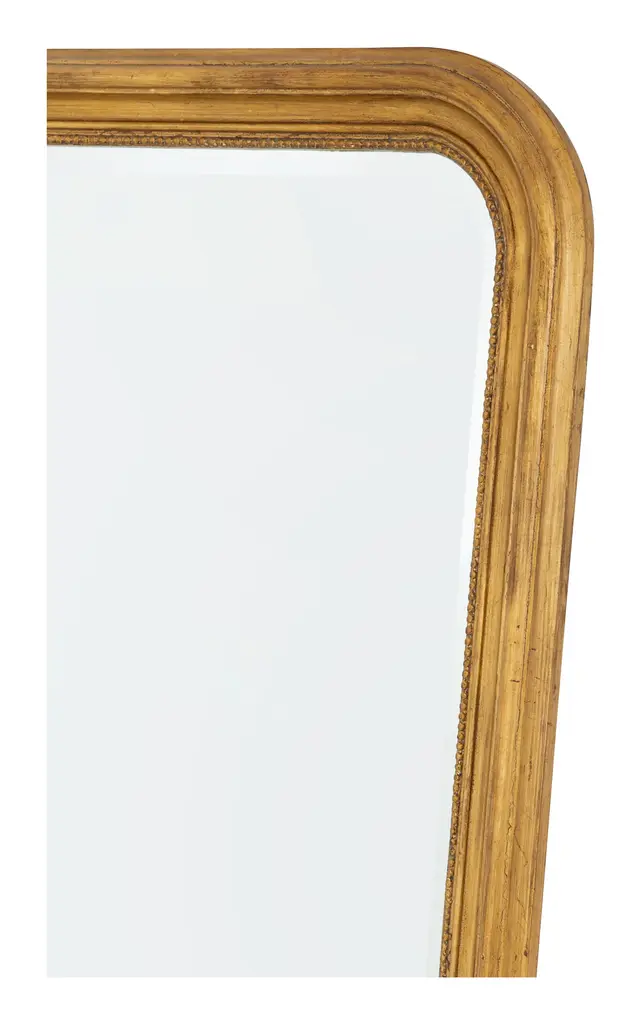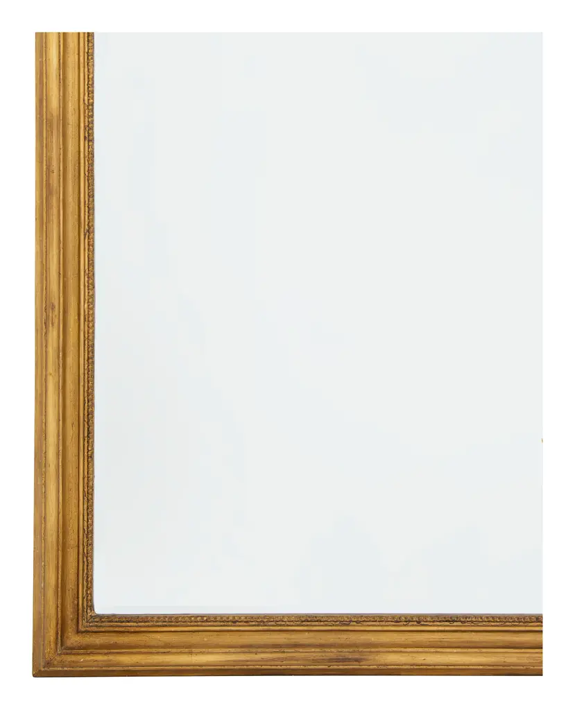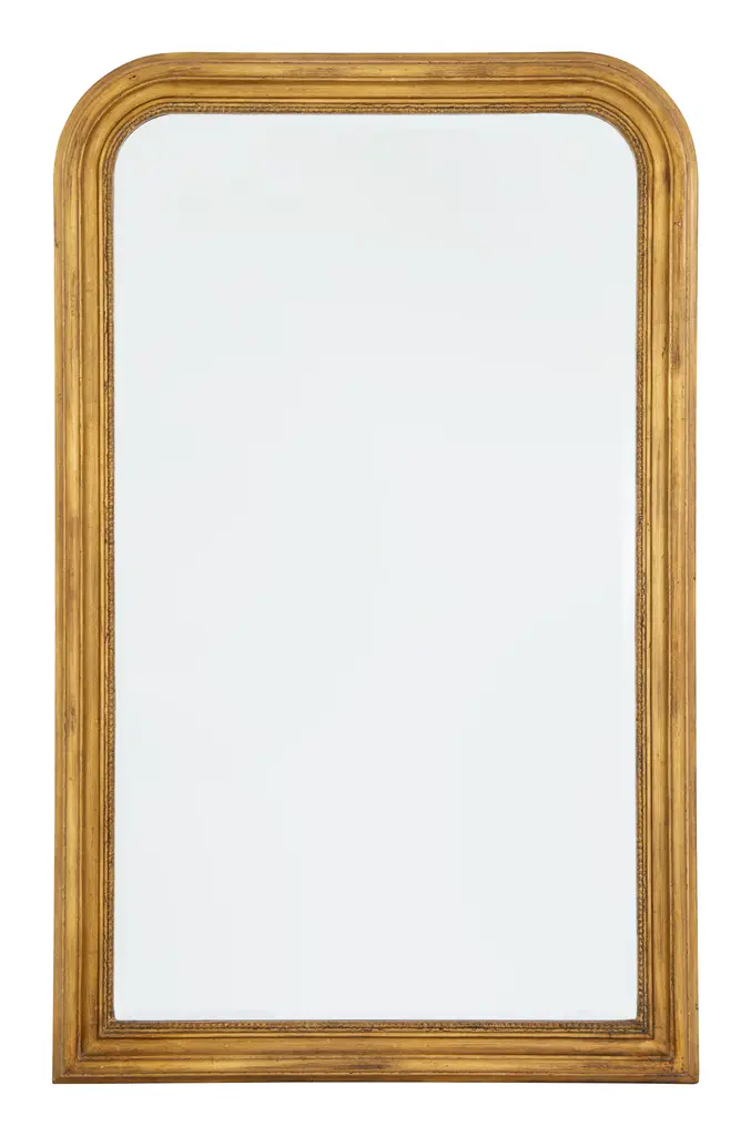 Give your walls the royal treatment with our lavish Albion Mirror. Taking its cue from the grandiose designs of the Rococo period, this beveled glass mirror is enclosed in an arched pine wood frame, which is decorated with beaded details along its interior edge and covered with a gilded finish for a bit of antiqued shine. As if these classic good looks weren’t enough to have you swooning already, Albion is also available in two sizes — meaning there’s truly one for any space. Style a medium over the mantel for a touch of old-world sophistication; or stage the full-length large in a bedroom or grand entryway, where it can add an element of history and elegance to all your “fit checks.” •beveled glass•pine wood•gilded finish•wire mount Dimensionsmedium: 35.5"W x 2"D x 47.75"H large: 39.25"W x 2"D x 61.5"H