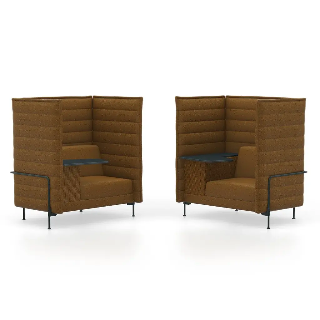 The fundamental idea behind the Alcove product family – providing places of shelter and seclusion – also applies to Alcove Highback Work: the sofa shields users both visually and acoustically from the surrounding environment, forming a space for withdrawal. With its integrated tablet desk, storage box and cable inlet, Alcove Highback Work is a sofa version that offers a flexible and private workspace in the open-plan office for individual tasks requiring concentration.