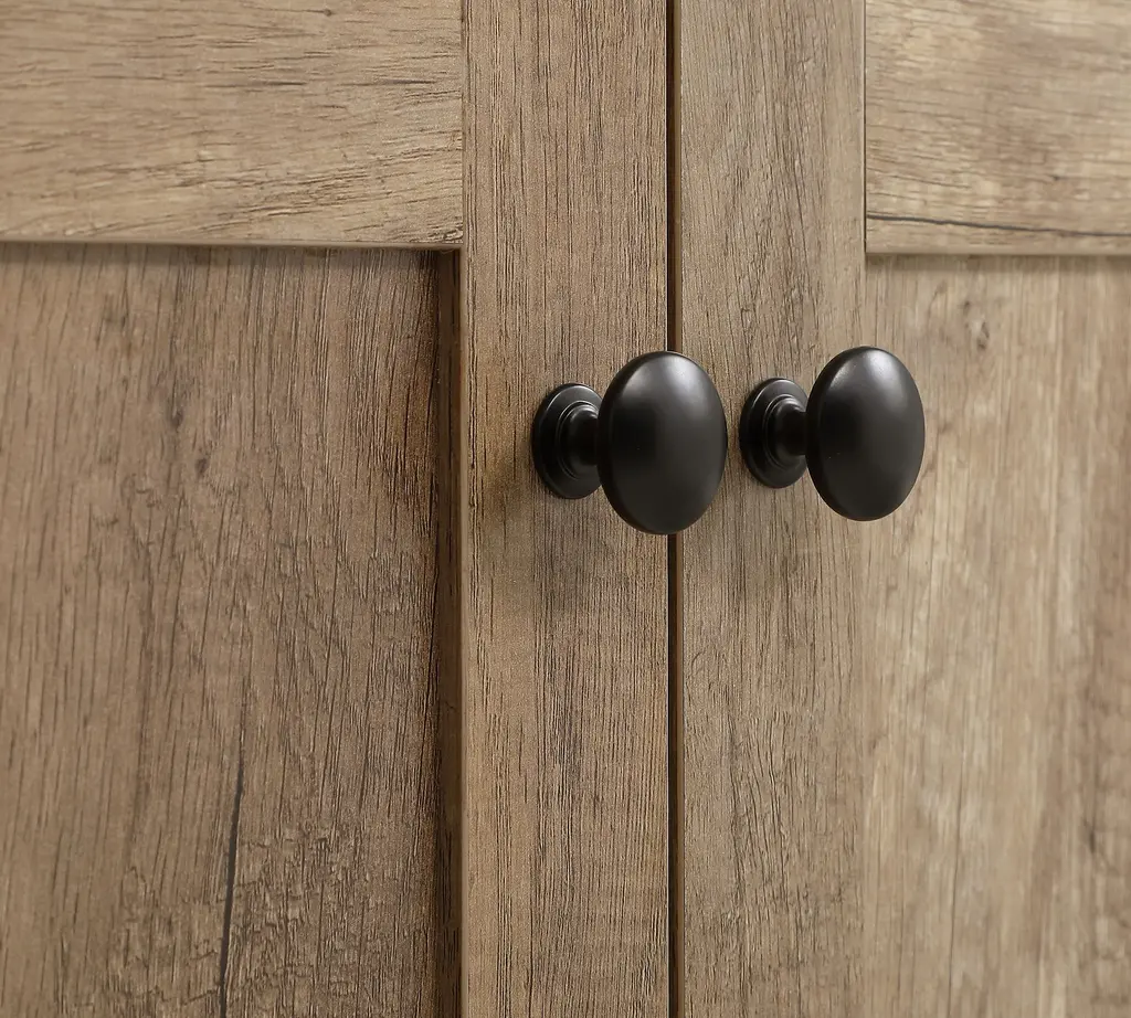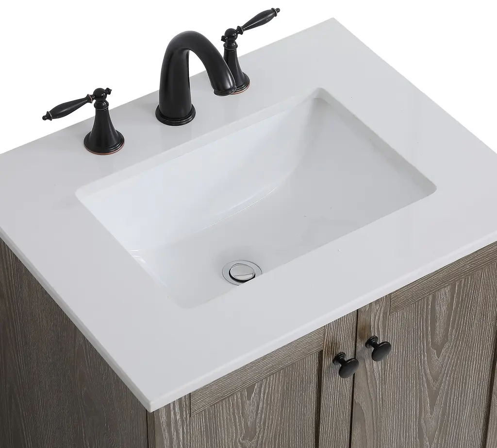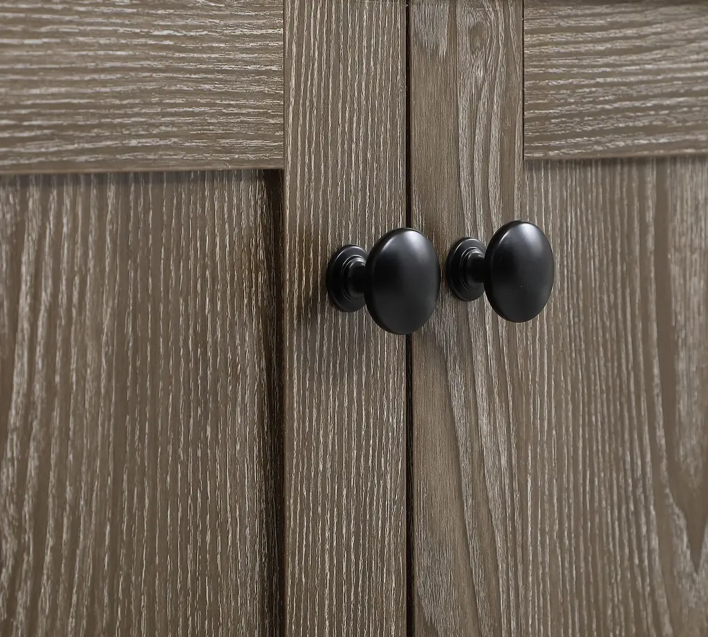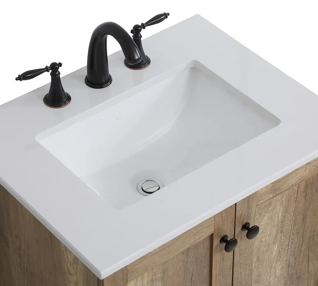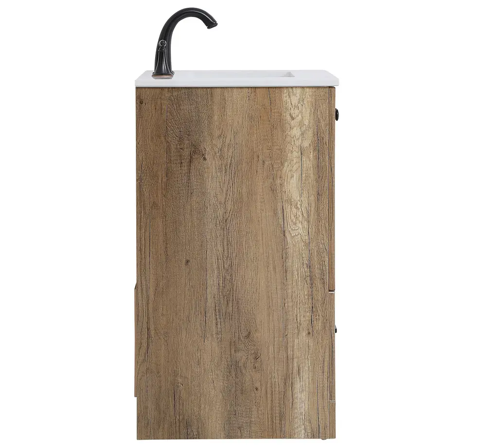 Clean lines and the warm look of wood lend a farmhouse feel to this vanity. Accented with pops of black for a modern edge, Alderson features storage to keep all your essentials organized (and the bath clutter free).