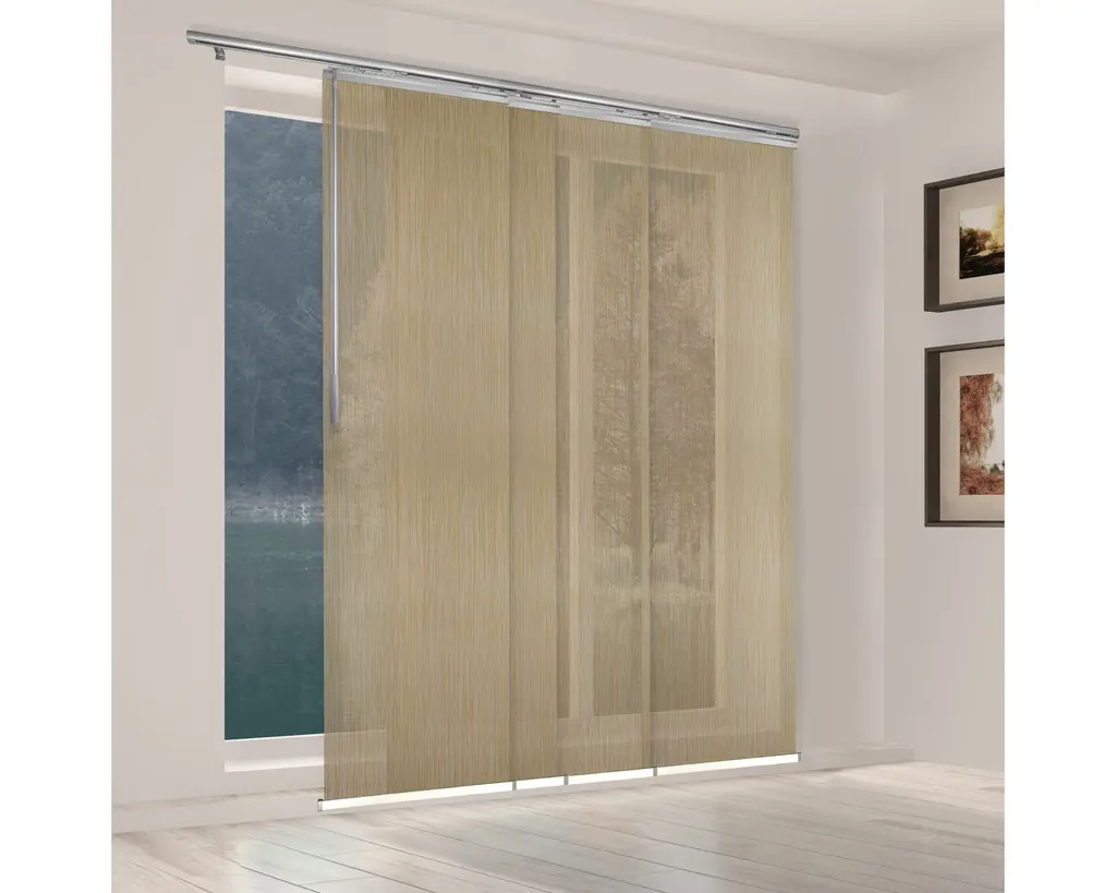 Central Design Products is pleased to introduce a new innovative panel track that offers easy 2-way installation, adding an alluring style and refined touch to your home decor. The single rail design of the track is sleek, compact, and reduces the overall footprint and weight of the installation, eliminating bulky, intrusive window treatments. Adjusting the panel height is a breeze � simply trim the panel, re-attach the liner, and install the panel weight. Detailed instructions are included.The panel track also features a patented slider design, made with aluminum and fitted with bearings that allow for durable and smooth operation. The sliders are stacked closer together than conventional panel tracks, reducing light bleed coming from the gaps between panels. This track has endless uses from dividing rooms, garages, offices, and closets to decorating windows and patios. Available in larger sizes including 8, 10, and 12 panels.Extends from 48-88� wide.Each panel measures 23.5" wide and 91.5" tall, with a total installation height of 94" (includes the 2.5" rail track).The track can be wall or ceiling mounted.The panels can stack on the left or the right.The clearance from the wall is extendable from 1.25� to 3.25� and projection from the wall is extendable from 3� to 4.25�.Aldi panel is made from 80% Vinyl 20% Polyester, with a light filtering shade that blocks 40% of the light.