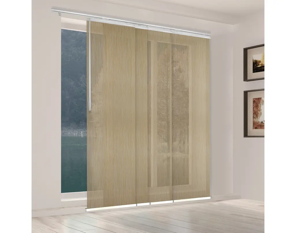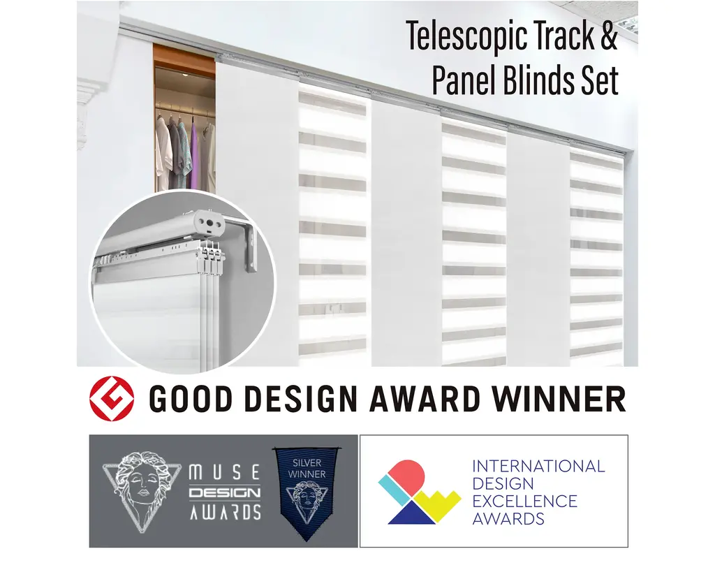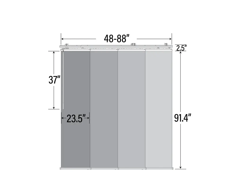 Central Design Products is pleased to introduce a new innovative panel track that offers easy 2-way installation, adding an alluring style and refined touch to your home decor. The single rail design of the track is sleek, compact, and reduces the overall footprint and weight of the installation, eliminating bulky, intrusive window treatments. Adjusting the panel height is a breeze � simply trim the panel, re-attach the liner, and install the panel weight. Detailed instructions are included.The panel track also features a patented slider design, made with aluminum and fitted with bearings that allow for durable and smooth operation. The sliders are stacked closer together than conventional panel tracks, reducing light bleed coming from the gaps between panels. This track has endless uses from dividing rooms, garages, offices, and closets to decorating windows and patios. Available in larger sizes including 8, 10, and 12 panels.Extends from 48-88� wide.Each panel measures 23.5" wide and 91.5" tall, with a total installation height of 94" (includes the 2.5" rail track).The track can be wall or ceiling mounted.The panels can stack on the left or the right.The clearance from the wall is extendable from 1.25� to 3.25� and projection from the wall is extendable from 3� to 4.25�.Aldi panel is made from 80% Vinyl 20% Polyester, with a light filtering shade that blocks 40% of the light.
