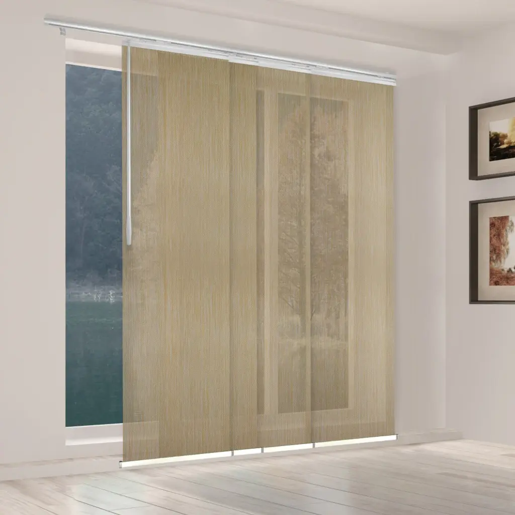 Central Design Products is pleased to introduce a new innovative panel track that offers easy 2-way installation, adding an alluring style and refined touch to your home decor. The single rail design of the track is sleek, compact, and reduces the overall footprint and weight of the installation, eliminating bulky, intrusive window treatments. Adjusting the panel height is a breeze � simply trim the panel, re-attach the liner, and install the panel weight. Detailed instructions are included.The panel track also features a patented slider design, made with aluminum and fitted with bearings that allow for durable and smooth operation. The sliders are stacked closer together than conventional panel tracks, reducing light bleed coming from the gaps between panels. This track has endless uses from dividing rooms, garages, offices, and closets to decorating windows and patios. Available in larger sizes including 8, 10, and 12 panels. Extends from 48-88� wide. Each panel measures 23.5" wide and 91.5" tall, with a total installation height of 94" (includes the 2.5" rail track). The track can be wall or ceiling mounted. The panels can stack on the left or the right. The clearance from the wall is extendable from 1.25� to 3.25� and projection from the wall is extendable from 3� to 4.25�. Aldi panel is made from 80% Vinyl 20% Polyester, with a light filtering shade that blocks 40% of the light.