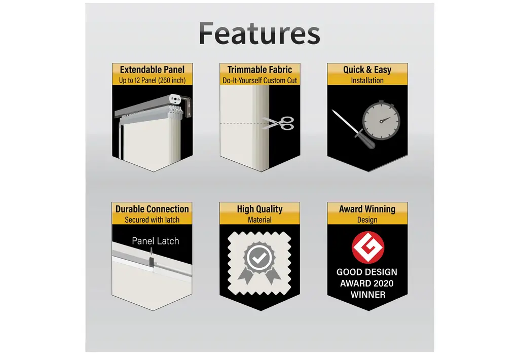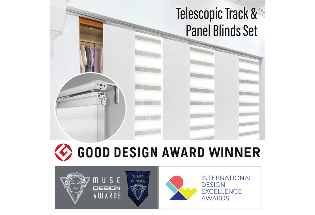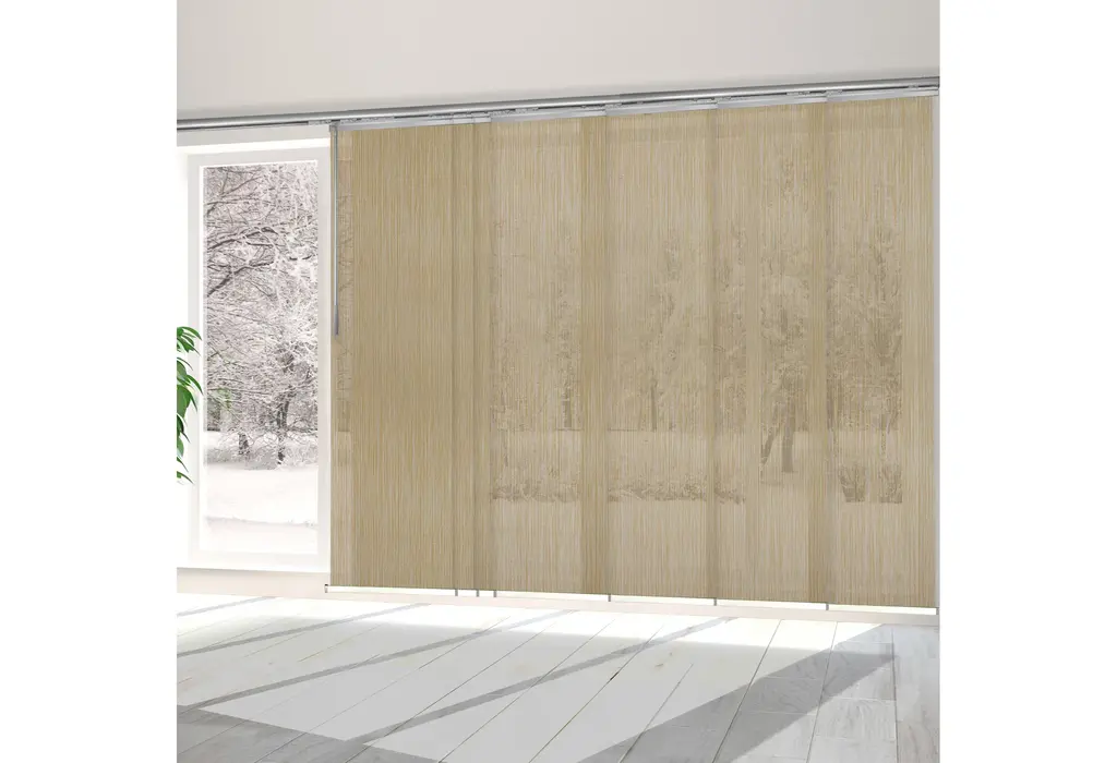 Central Design Products is pleased to introduce a new innovative panel track that offers easy 2-way installation, adding an alluring style and refined touch to your home decor. The single rail design of the track is sleek, compact, and reduces the overall footprint and weight of the installation, eliminating bulky, intrusive window treatments. Adjusting the panel height is a breeze � simply trim the panel, re-attach the liner, and install the panel weight. Detailed instructions are included.The panel track also features a patented slider design, made with aluminum and fitted with bearings that allow for durable and smooth operation. The sliders are stacked closer together than conventional panel tracks, reducing light bleed coming from the gaps between panels. This track has endless uses from dividing rooms, garages, offices, and closets to decorating windows and patios. Available in larger sizes including 8, 10, and 12 panels.Extends from 110-153� wide.Each panel measures 23.5" wide and 91.5" tall, with a total installation height of 94" (includes the 2.5" rail track).The track can be wall or ceiling mounted.The panels can stack on the left or the right.The clearance from the wall is extendable from 1.25� to 3.25� and projection from the wall is extendable from 3� to 4.25�.Aldi panel is made from 80% Vinyl 20% Polyester, with a light filtering shade that blocks 40% of the light.