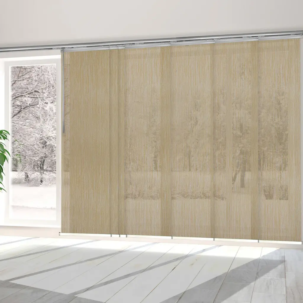 Central Design Products is pleased to introduce a new innovative panel track that offers easy 2-way installation, adding an alluring style and refined touch to your home decor. The single rail design of the track is sleek, compact, and reduces the overall footprint and weight of the installation, eliminating bulky, intrusive window treatments. Adjusting the panel height is a breeze � simply trim the panel, re-attach the liner, and install the panel weight. Detailed instructions are included.The panel track also features a patented slider design, made with aluminum and fitted with bearings that allow for durable and smooth operation. The sliders are stacked closer together than conventional panel tracks, reducing light bleed coming from the gaps between panels. This track has endless uses from dividing rooms, garages, offices, and closets to decorating windows and patios. Available in larger sizes including 8, 10, and 12 panels. Extends from 110-153� wide. Each panel measures 23.5" wide and 91.5" tall, with a total installation height of 94" (includes the 2.5" rail track). The track can be wall or ceiling mounted. The panels can stack on the left or the right. The clearance from the wall is extendable from 1.25� to 3.25� and projection from the wall is extendable from 3� to 4.25�. Aldi panel is made from 80% Vinyl 20% Polyester, with a light filtering shade that blocks 40% of the light.