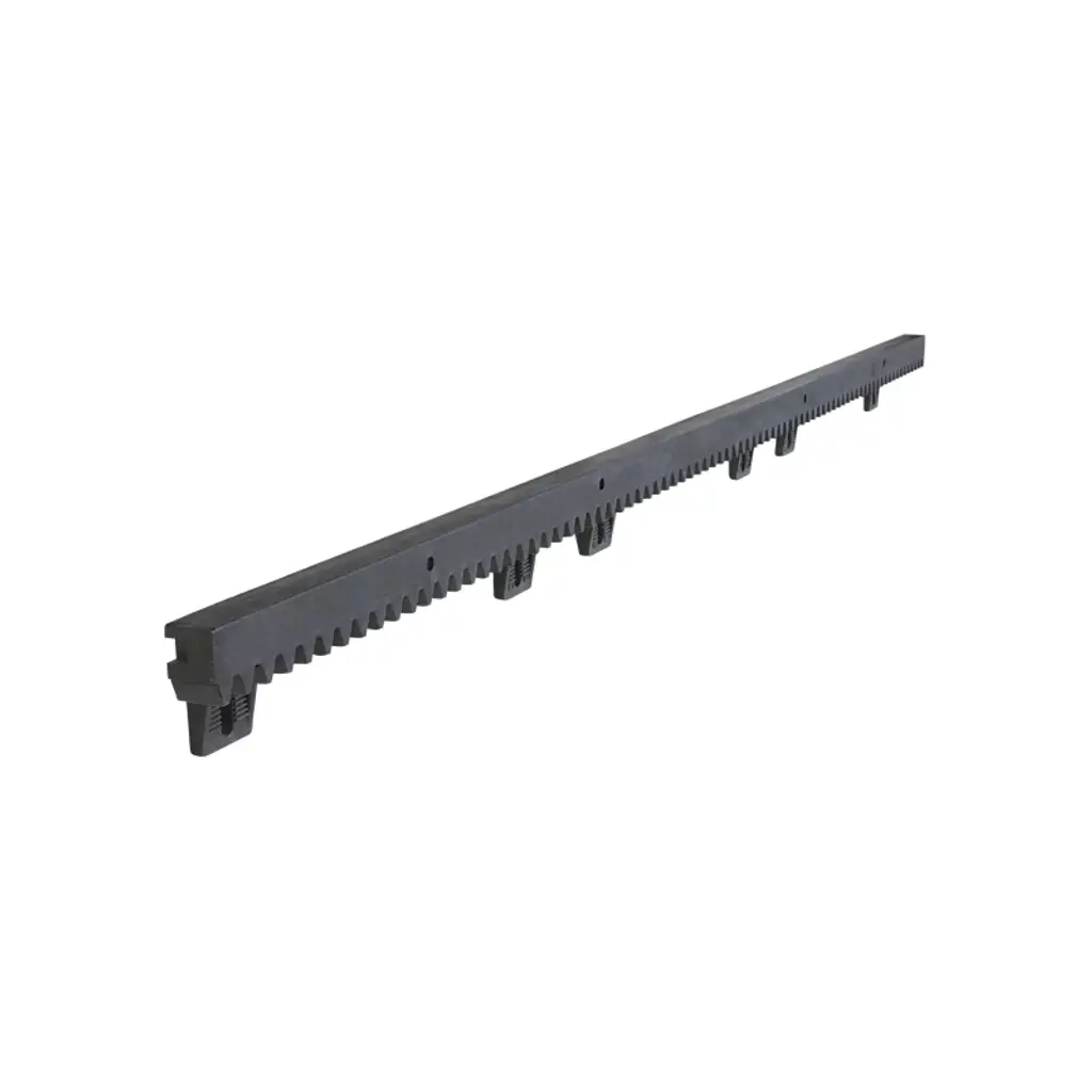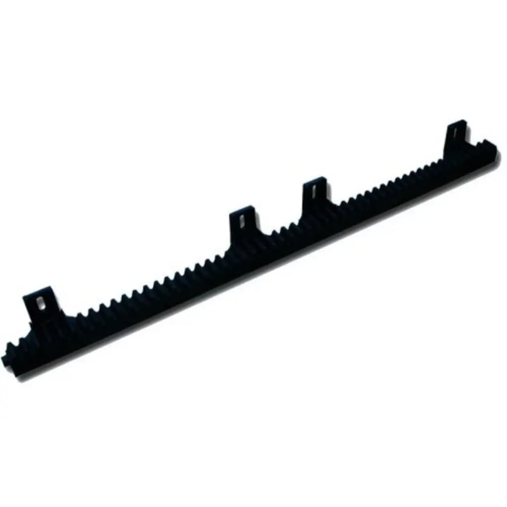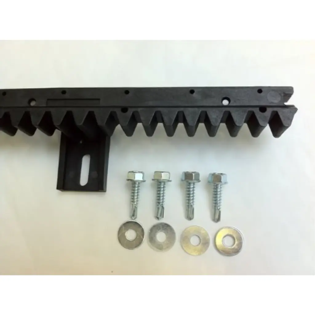 ALEKO 3.3 Ft Nylon Gear Rack With Metal Insert, pack of 6pc. Material: Glass-fiber reinforced nylon with inside steel insert. Size: 1010 x 20 x 26.5 mm. Nylon gear rack 6pcs 20ft for ALEKO sliding gate opener, and other gear driven gate openers. Compatible Models AR900, AR1300, AR1400, AR1800, AR2200, AR2400, AR2700, AR5700.