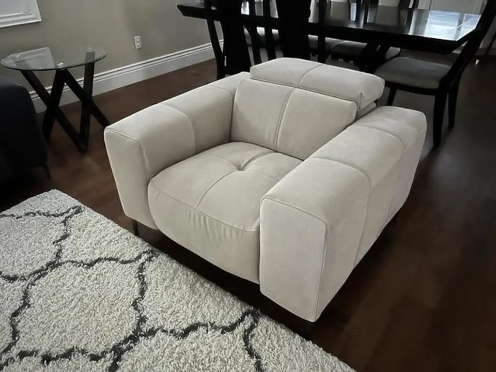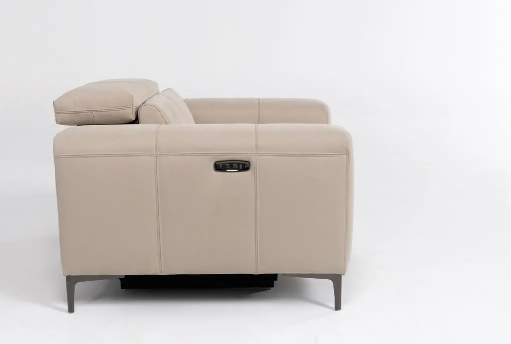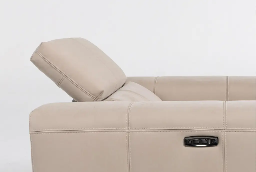 The Alessa II Stone Fabric 43" Power Zero Gravity Oversized Recliner with Power Headrest offers unparalleled comfort and contemporary style for your living room. Upholstered in light khaki polyester, this recliner is designed for relaxation with its adjustable headrest and zero gravity positioning. Its high performance fabric ensures durability and stain resistance, making it perfect for everyday use.