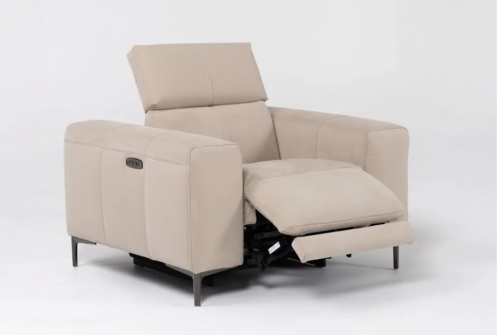 Alessa Ii Stone Fabric 43" Power Zero Gravity Oversized Recliner With Power Headrest Set Of 2