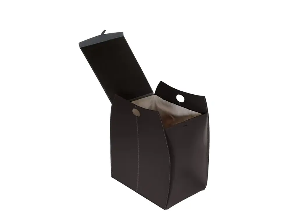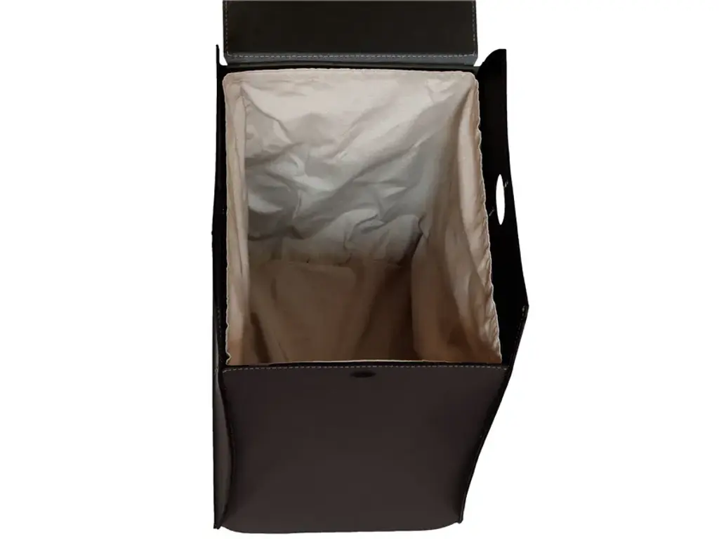Rectangular laundry basket wth closing flap.Pure cotton removable laundry bag inside.Plywood frame with rubber feet.